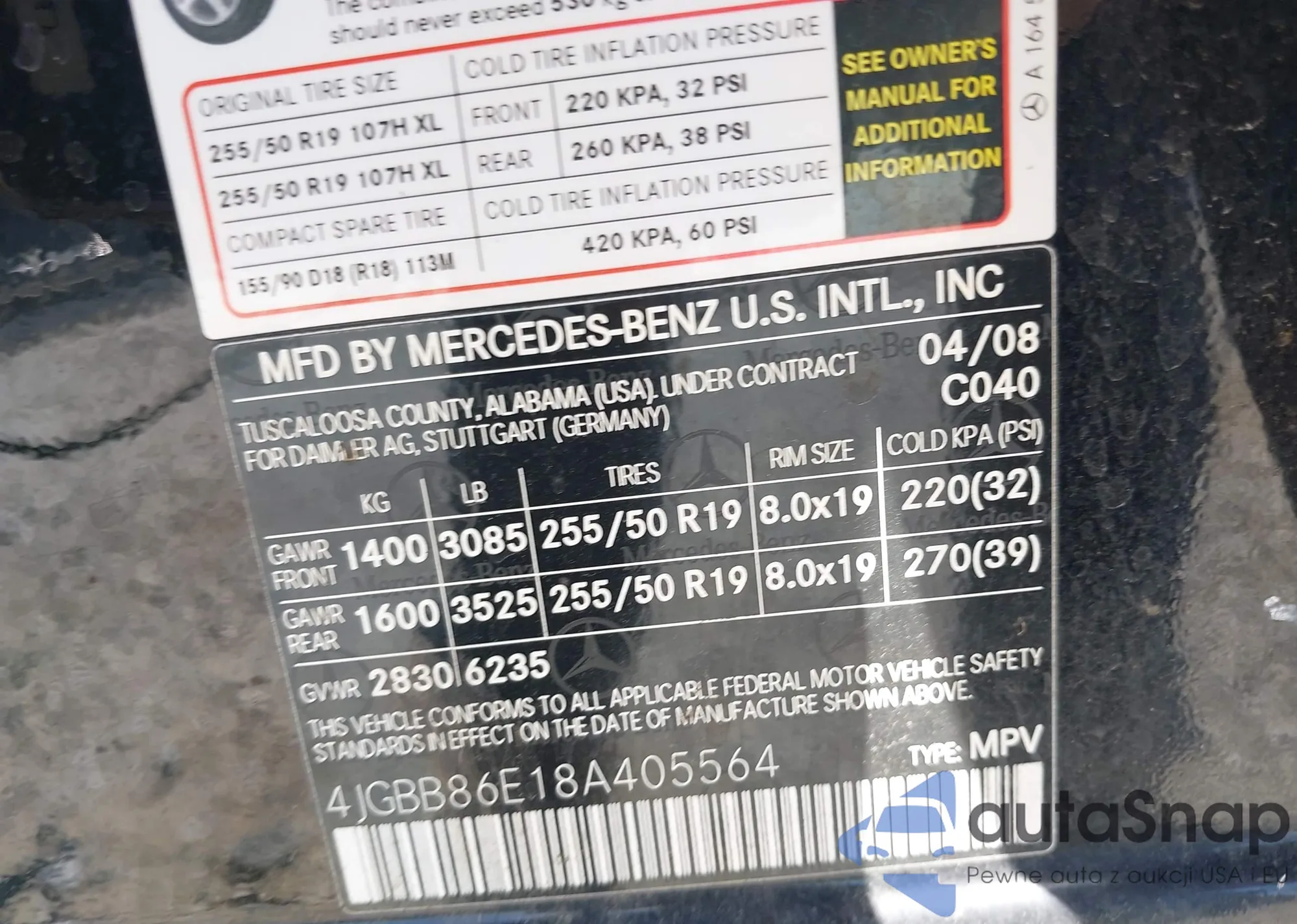 LOT: 43058928 VIN: 4JGBB86E18A405564