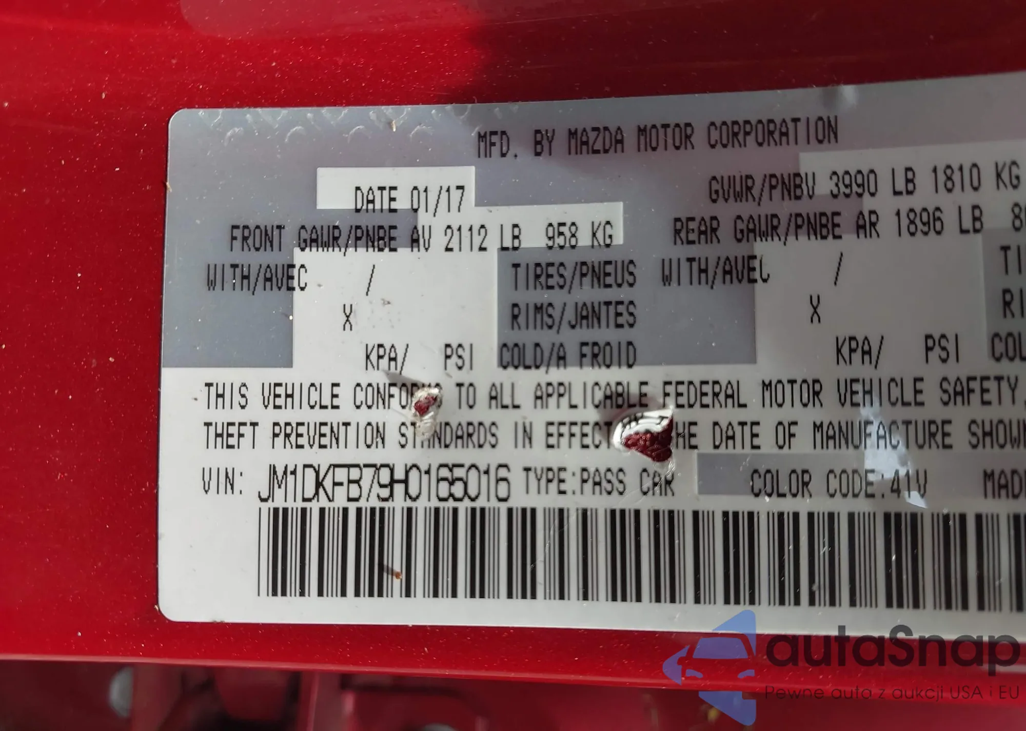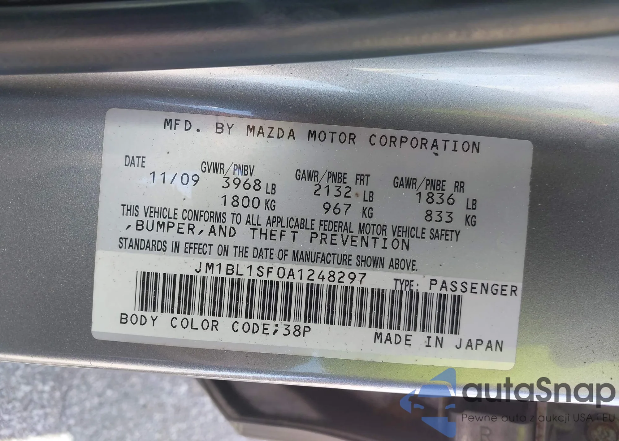 LOT: 43130009 VIN: JM1BL1SF0A1248297