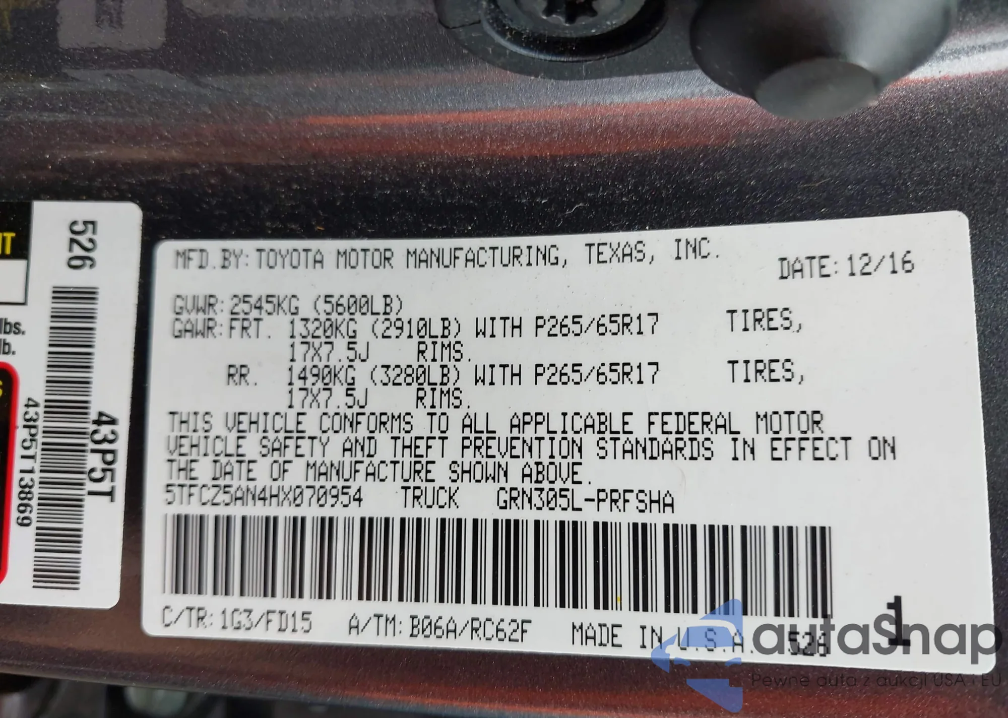 LOT: 43226718 VIN: 5TFCZ5AN4HX070954