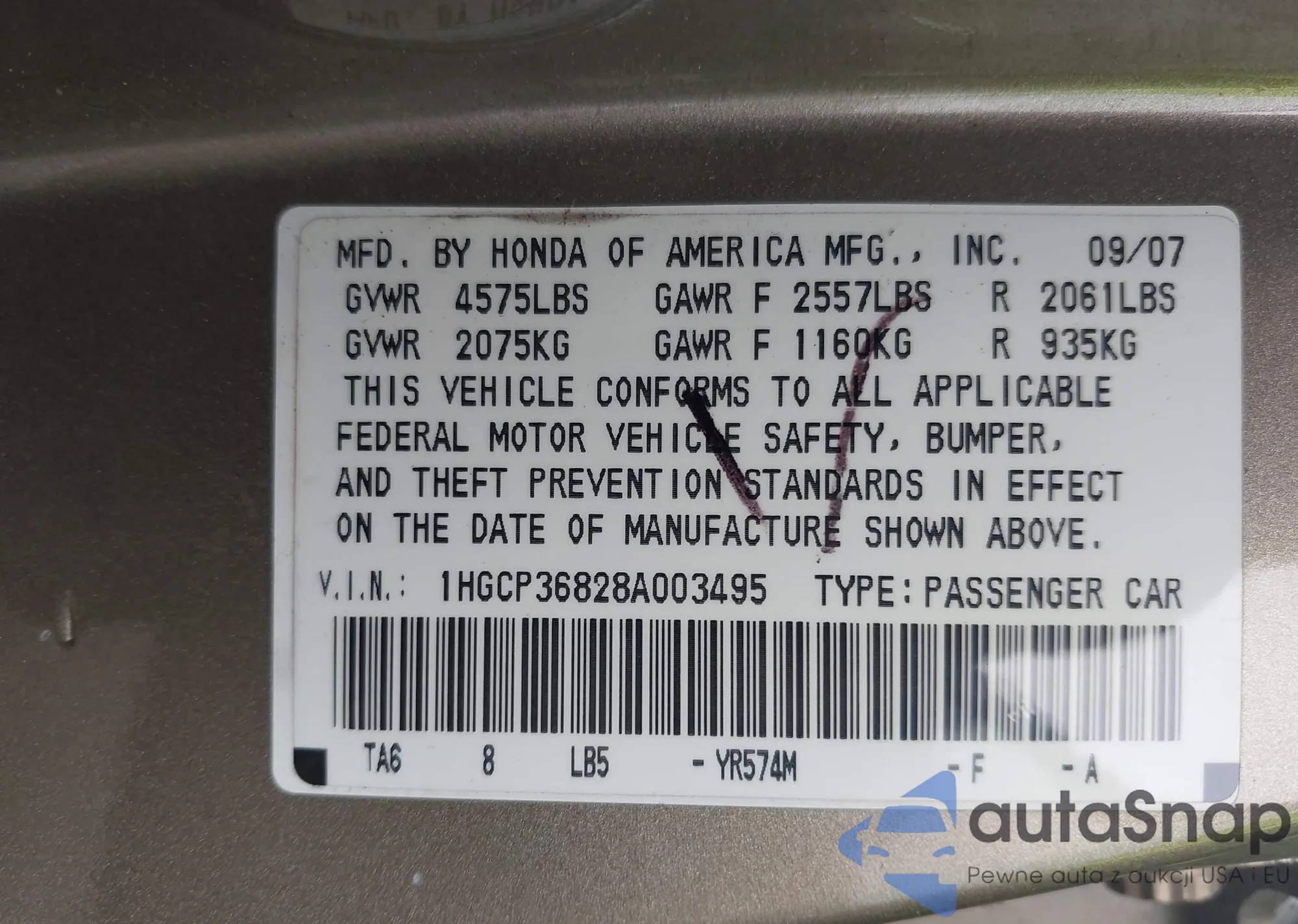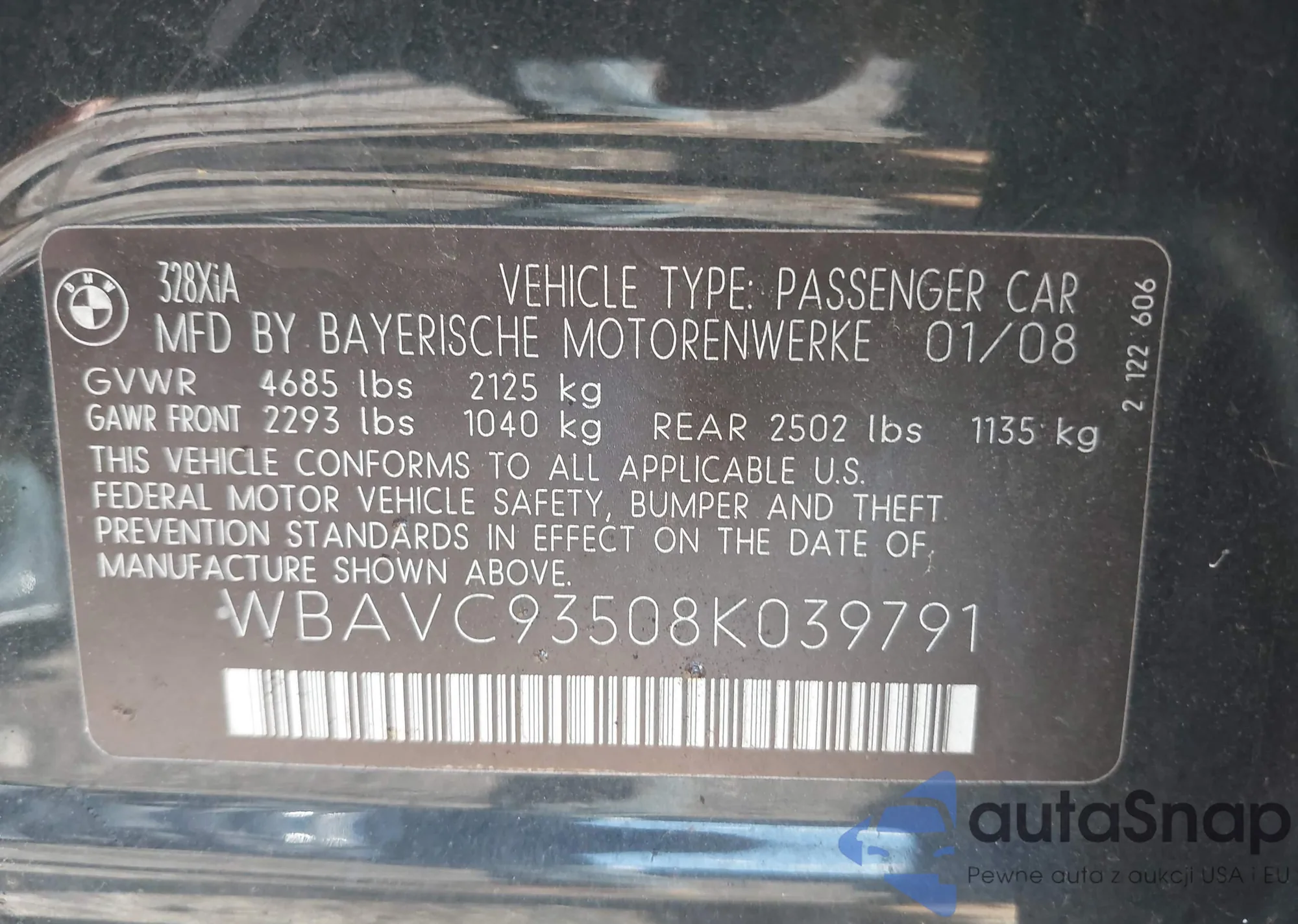 • VIN WBAVC93508K039791
