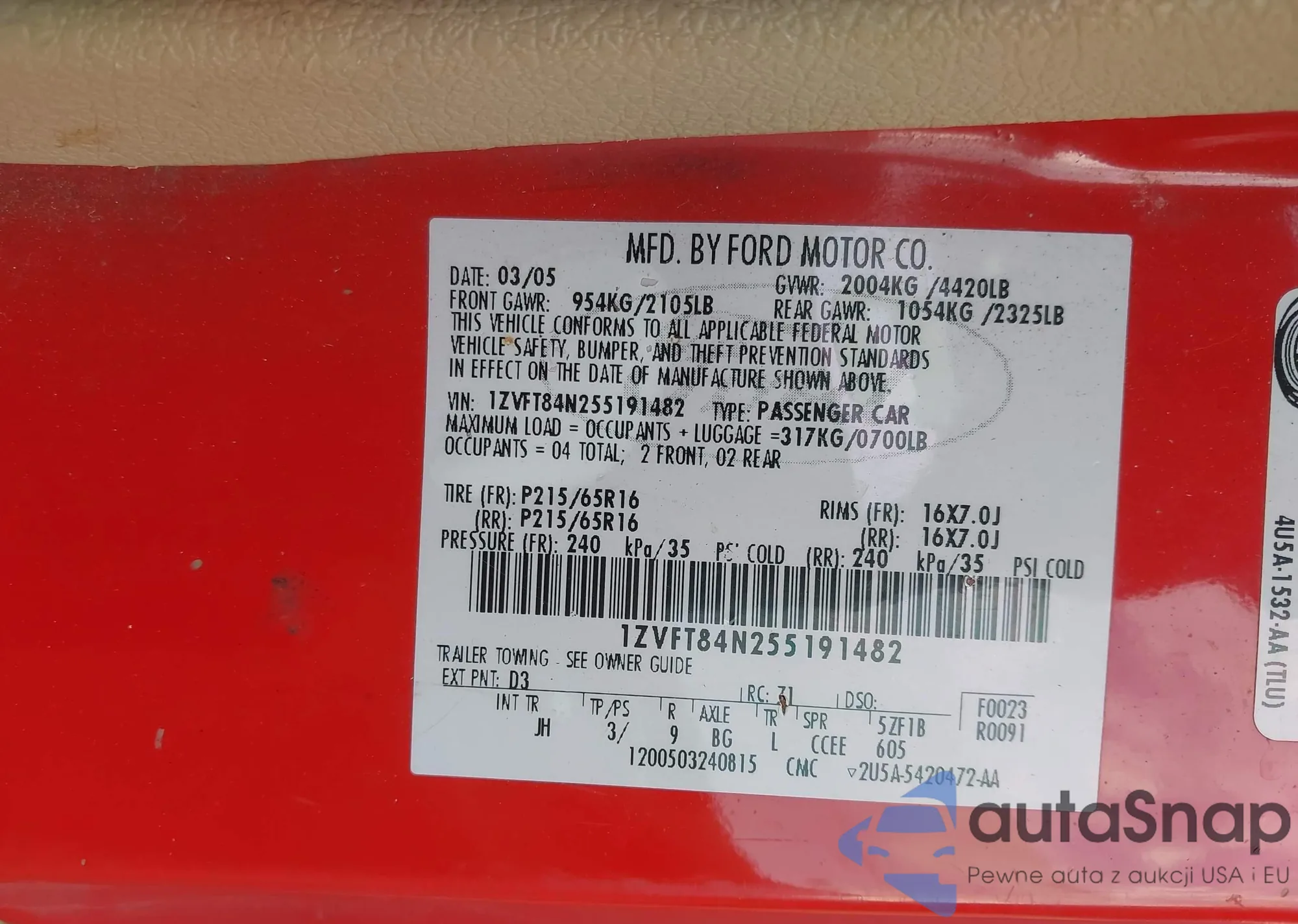 • VIN 5TFCZ5AN4HX070954