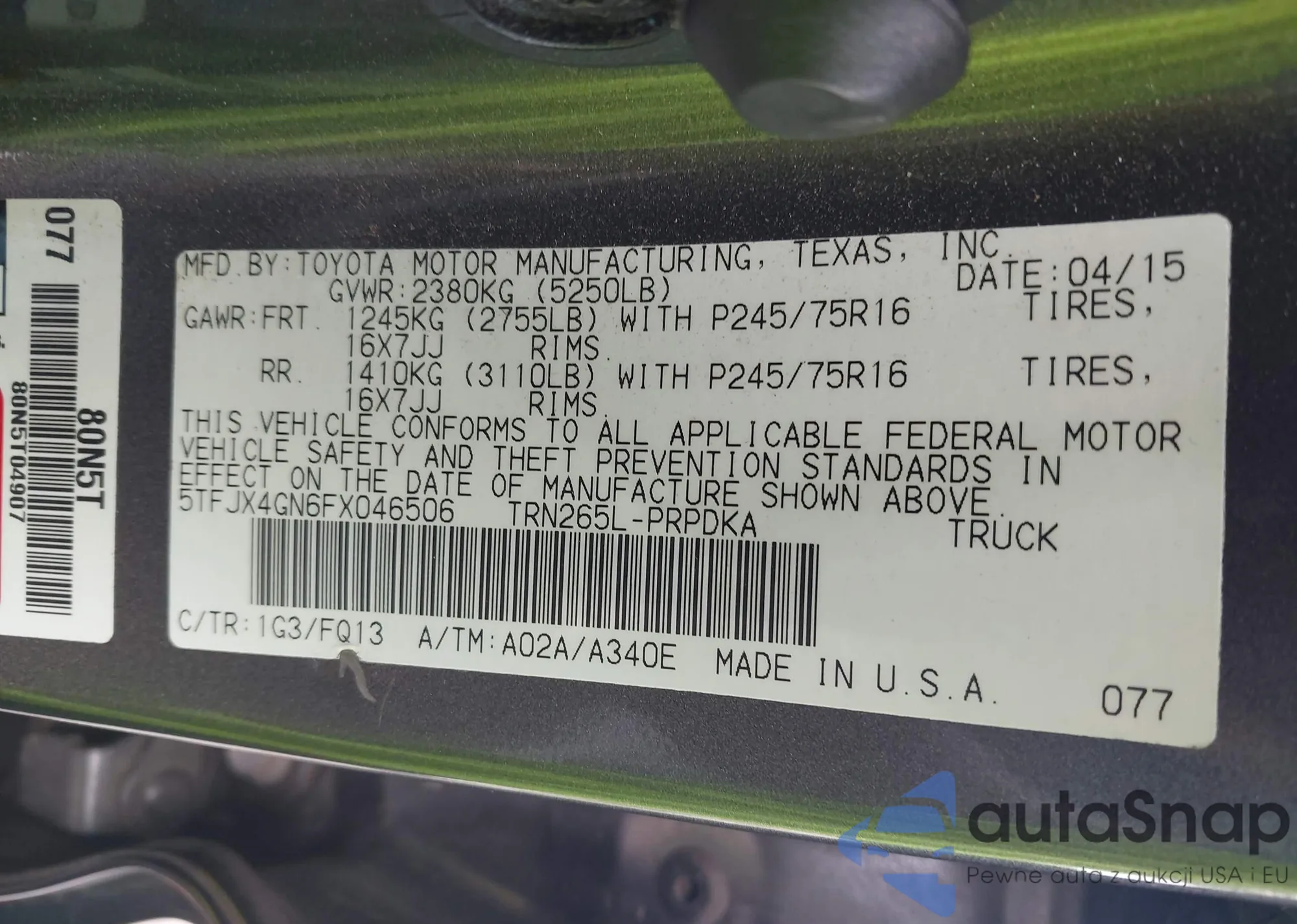 LOT: 42844518 VIN: KNMAT2MT4GP625739
