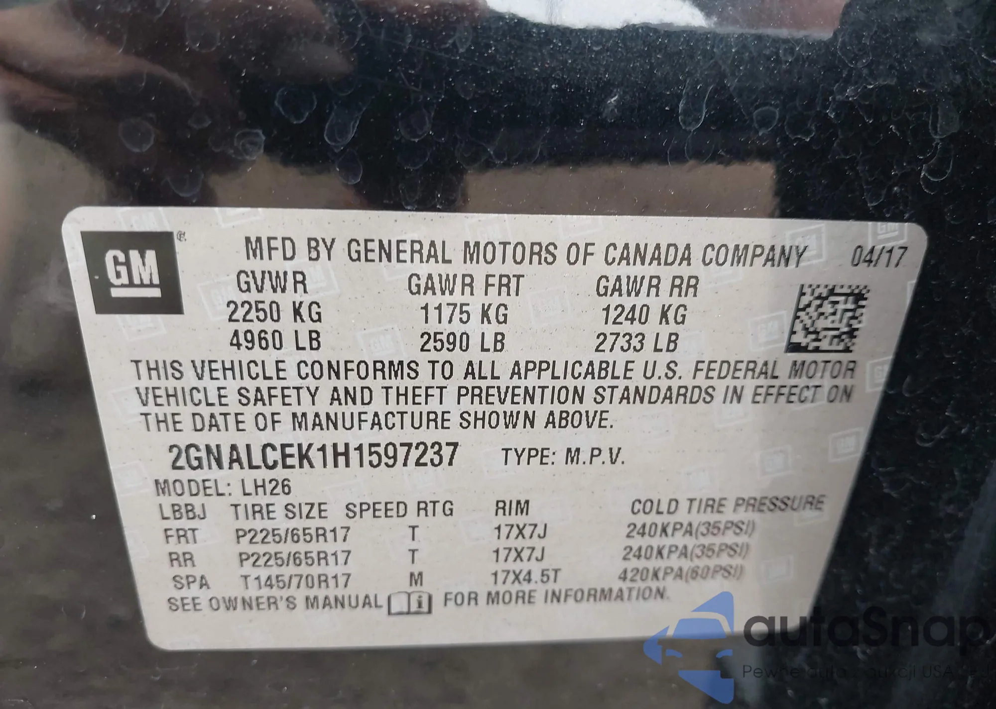 • VIN 2GNALCEK1H1597237