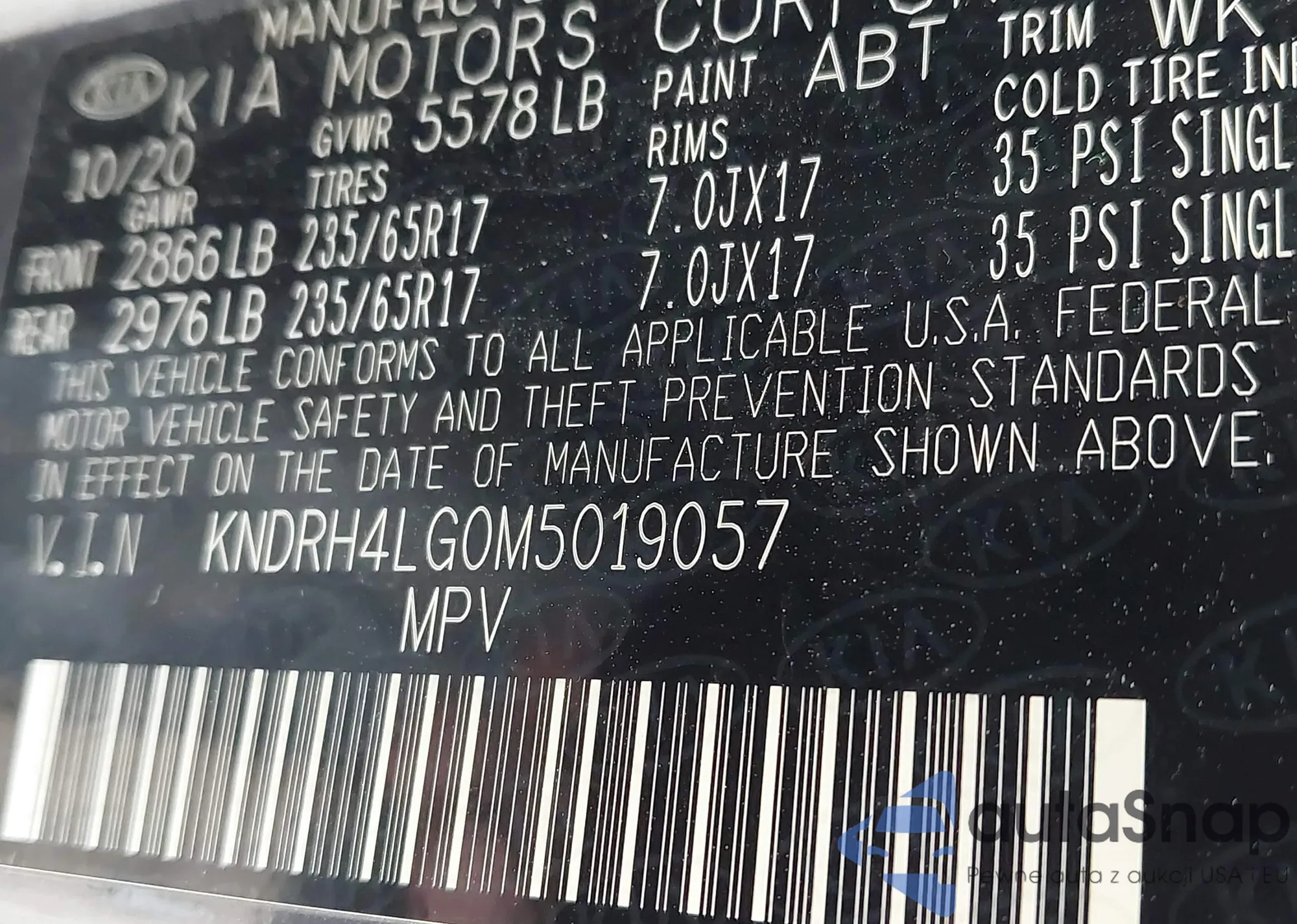 • VIN KNDRH4LG0M5019057