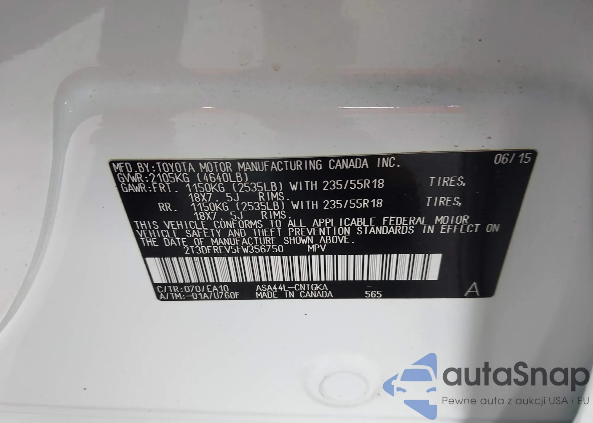 • VIN 2T3DFREV5FW356750