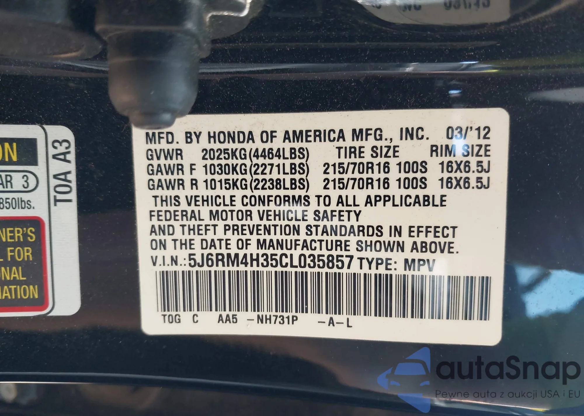 • VIN 5UXZV4C54CL767326