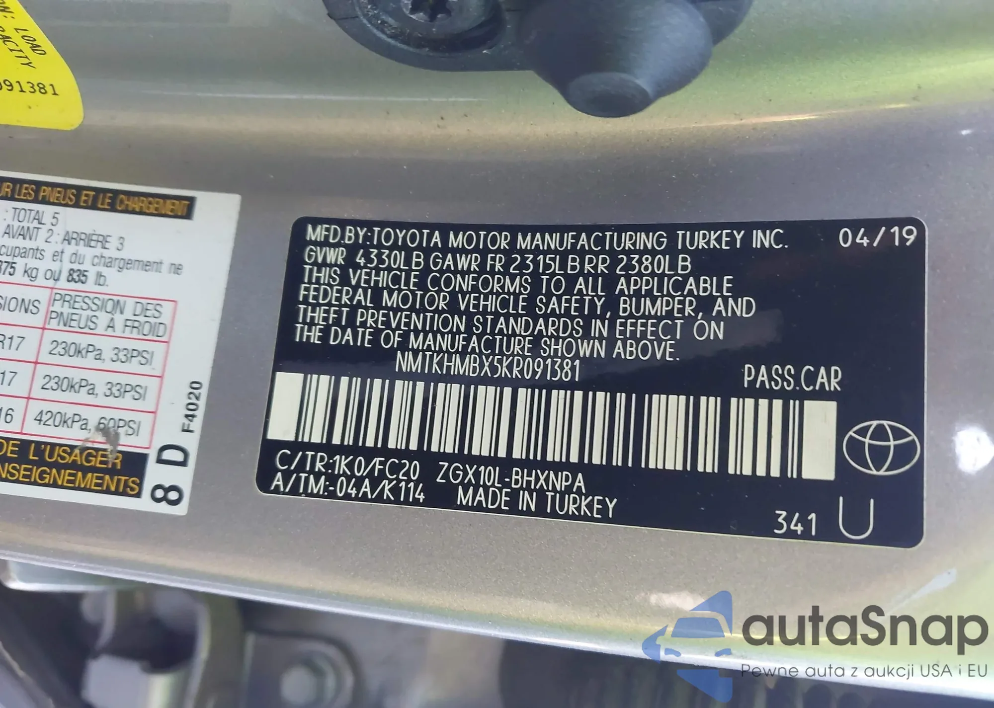 • VIN NMTKHMBX5KR091381