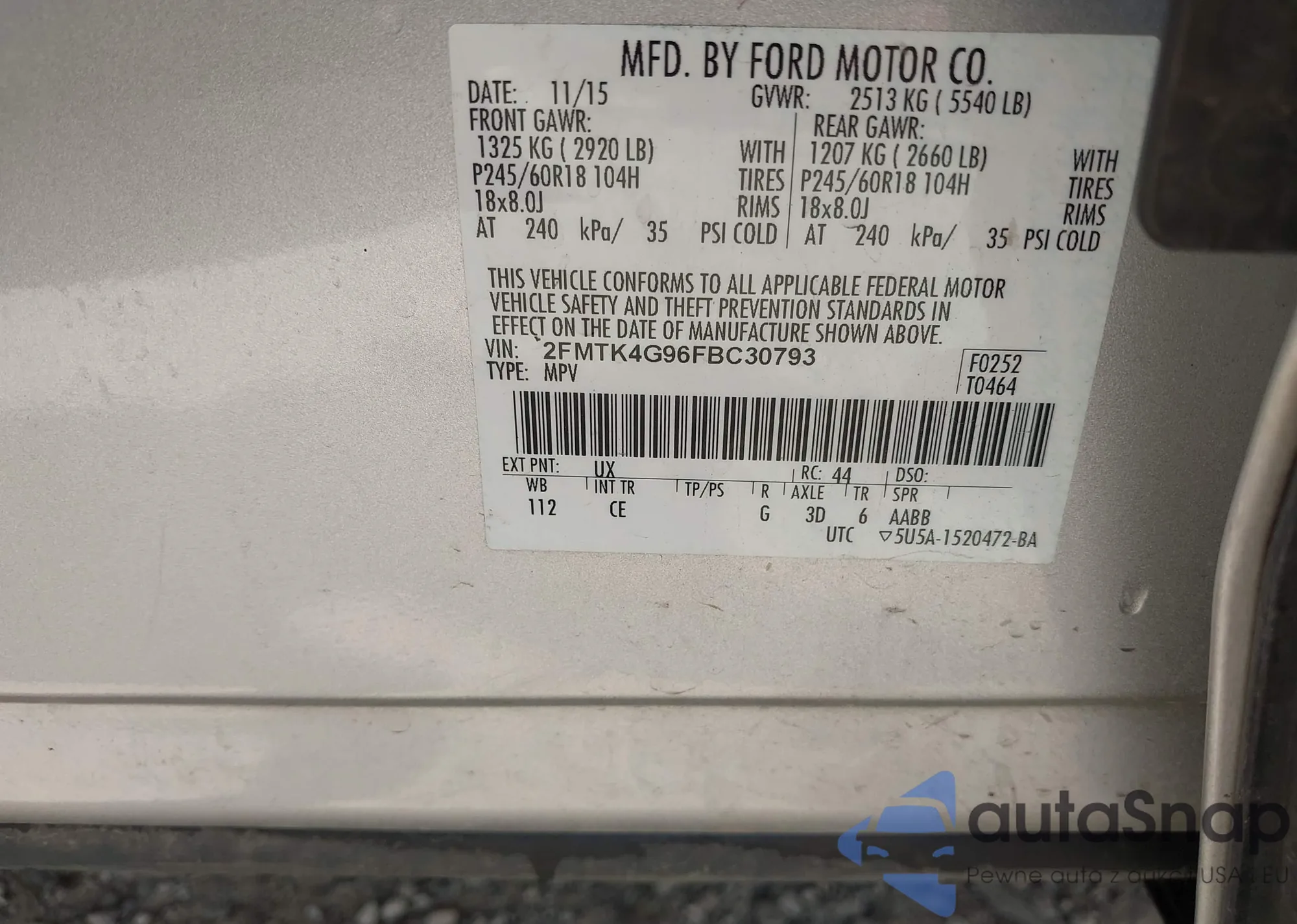 • VIN 2FMTK4G96FBC30793