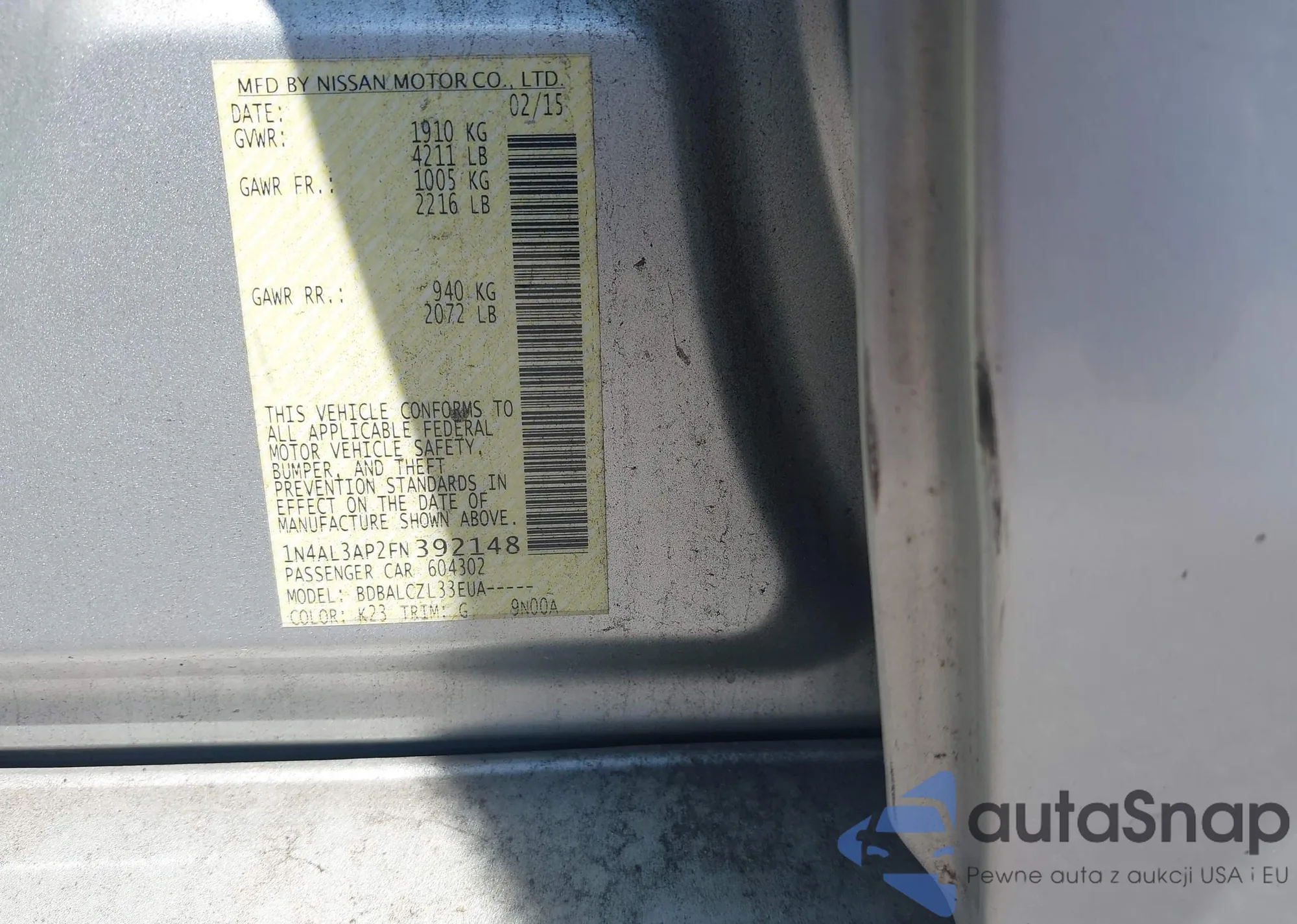 LOT: 43075318 VIN: 1N4AL3AP2FN392148