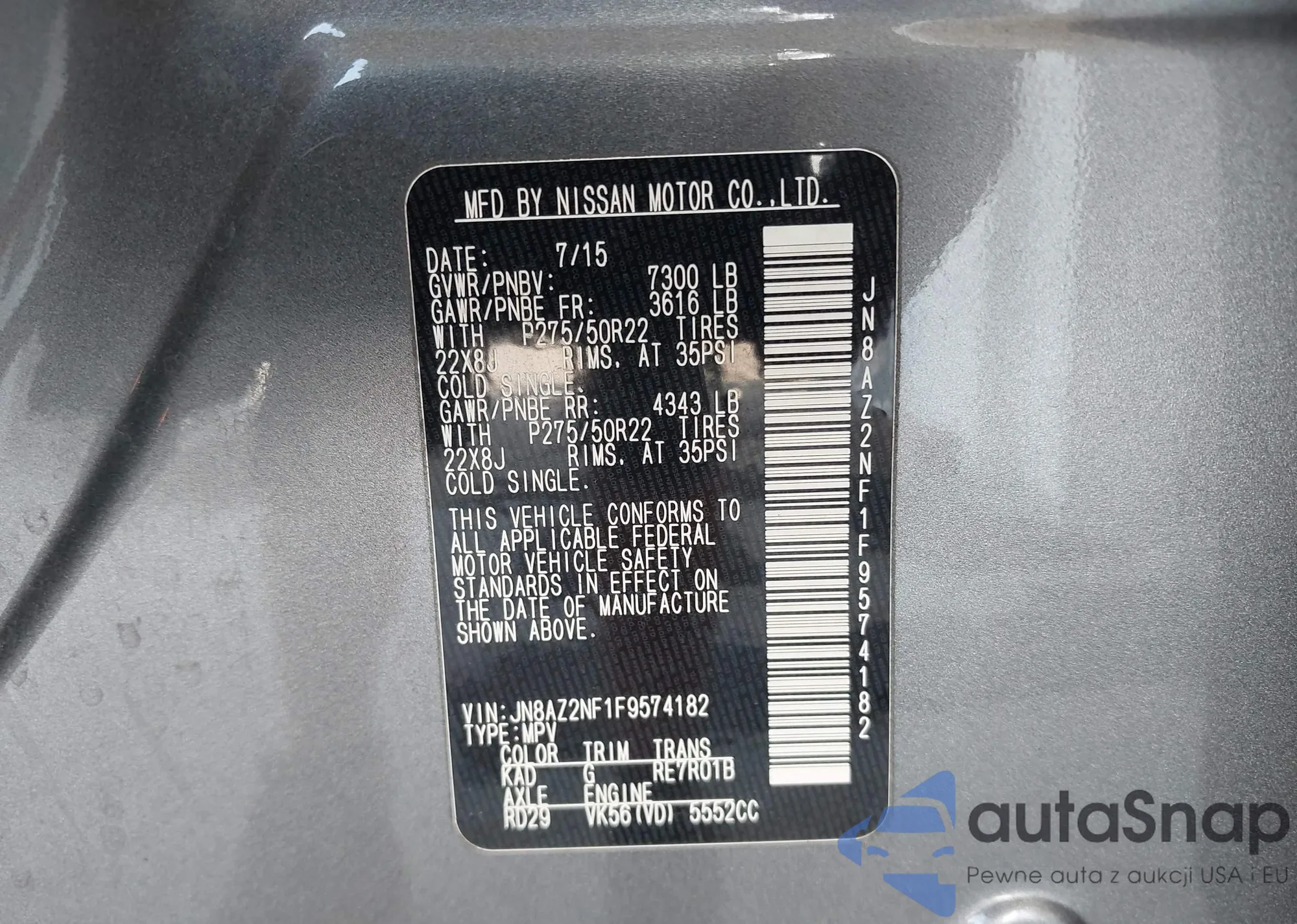 • VIN JN8AZ2NF1F9574182