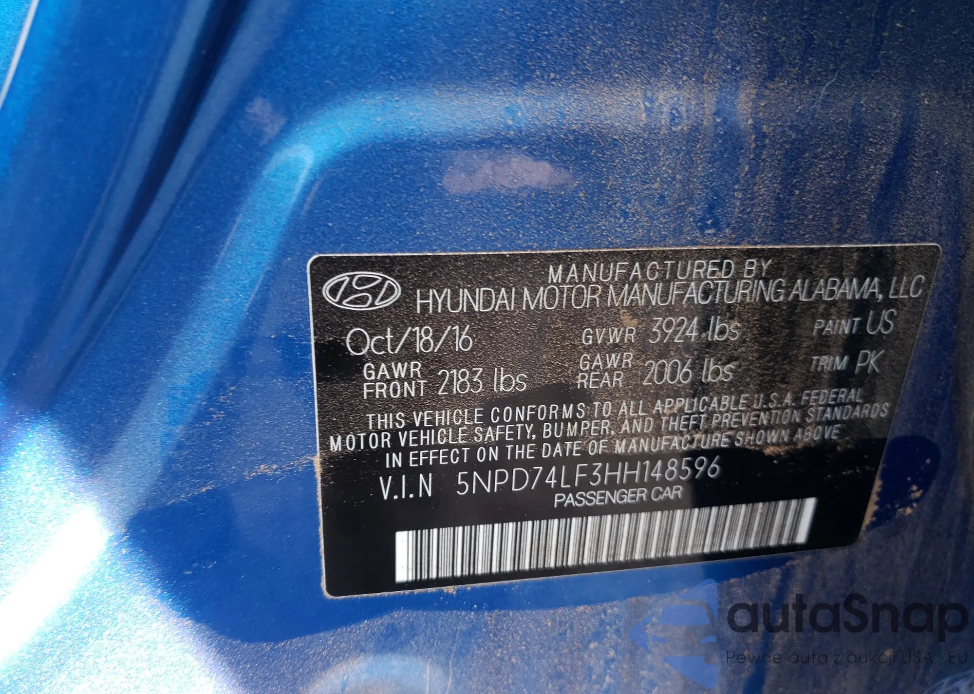 LOT: 49219280 VIN: 5NPD74LF3HH148596