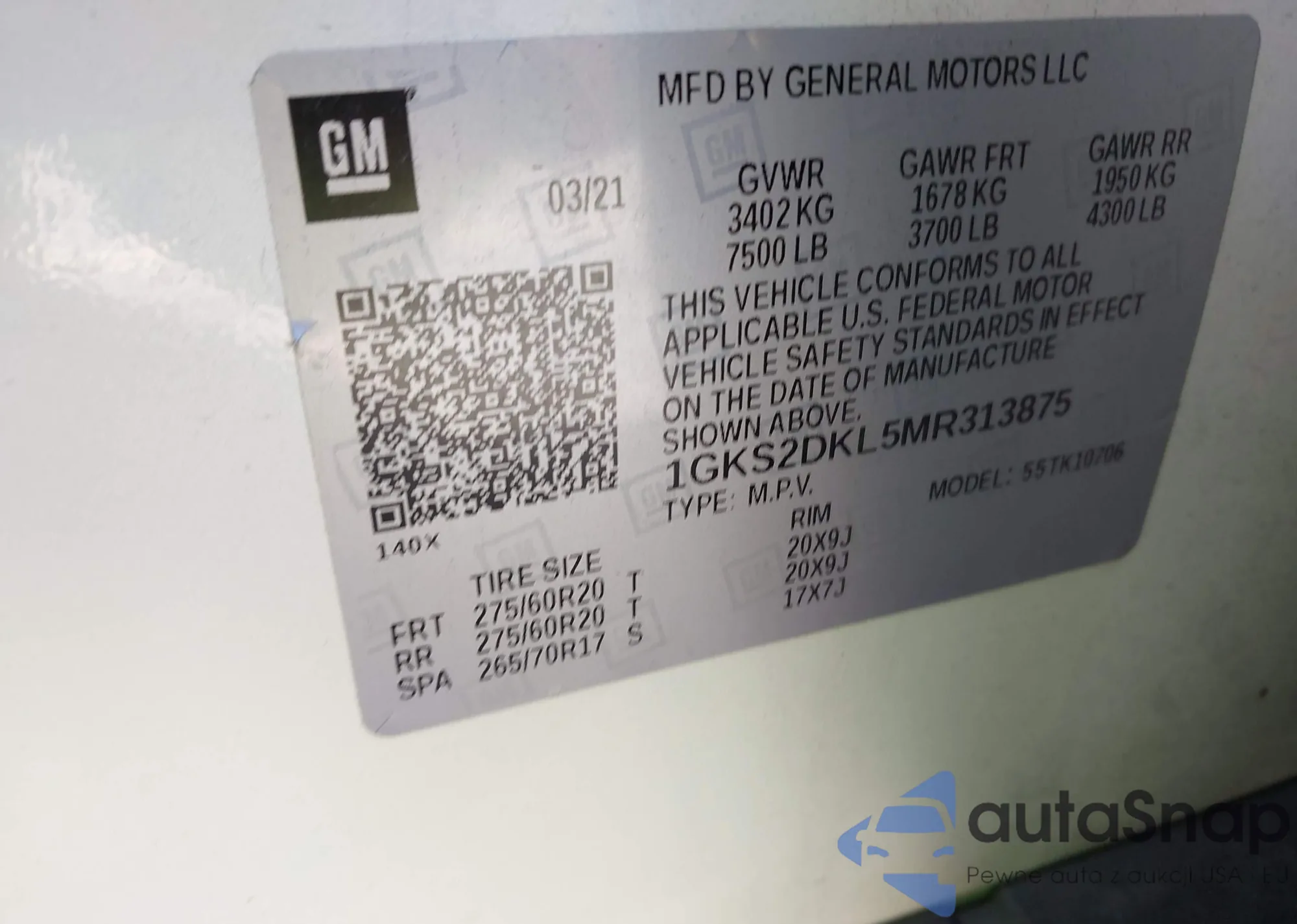 LOT: 43118318 VIN: 1G1ZE5STXHF126980