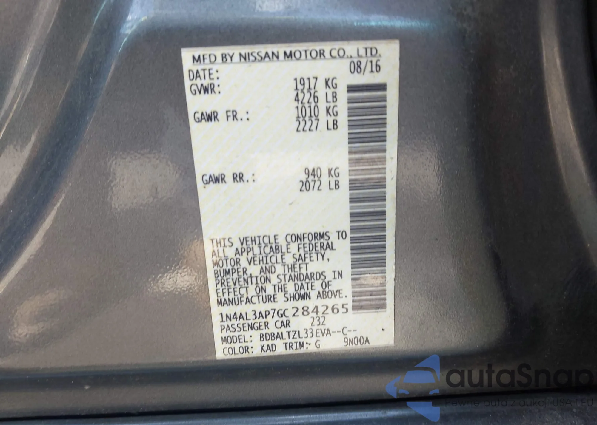 • VIN 1N4AL3AP7GC284265
