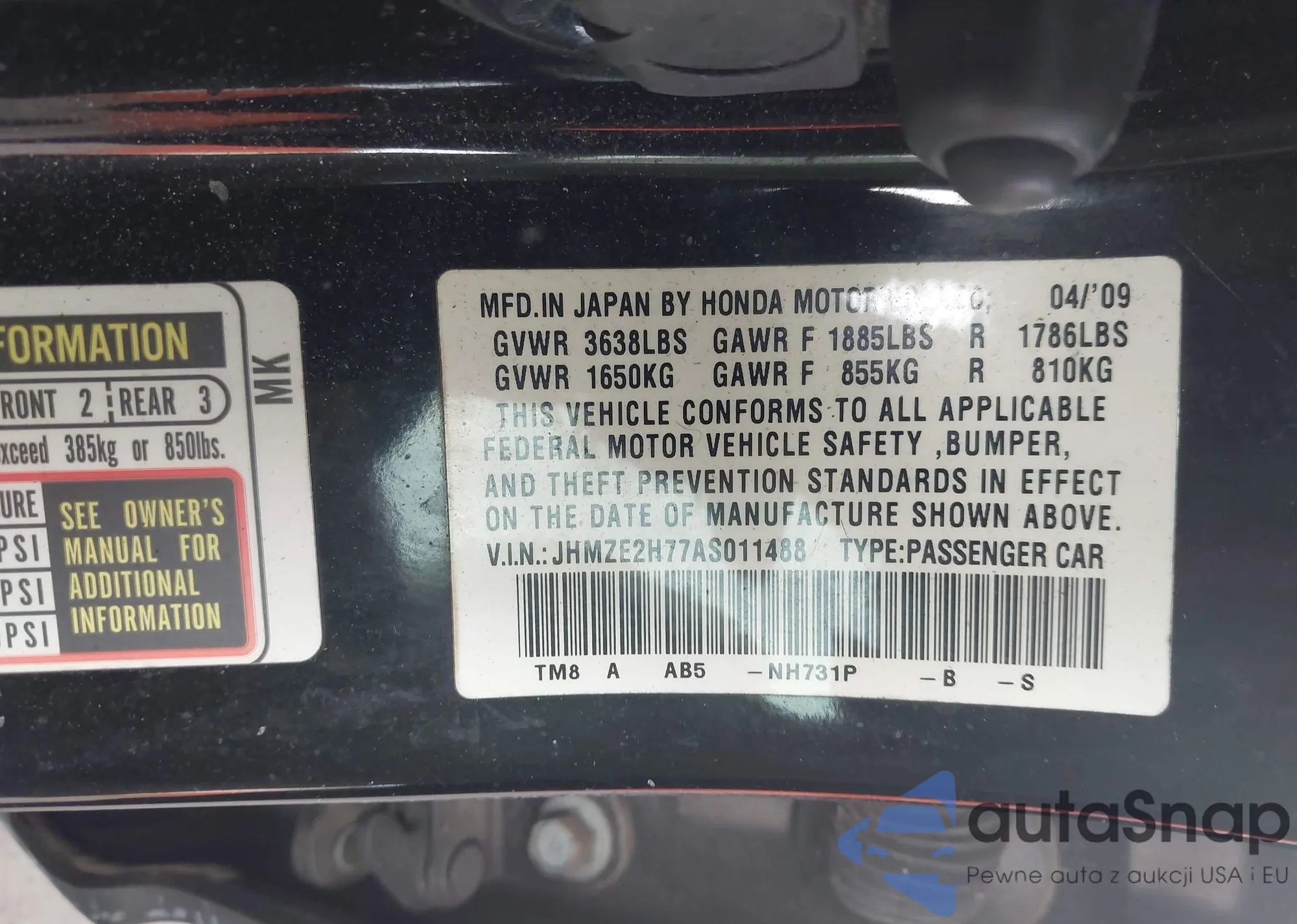 • VIN JHMZE2H77AS011488