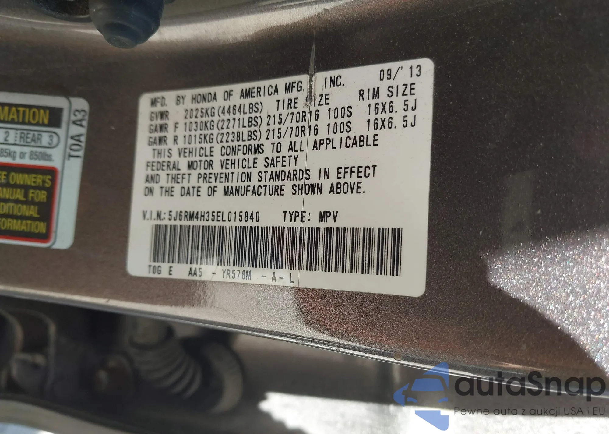 • VIN 5J6RM4H35EL015840