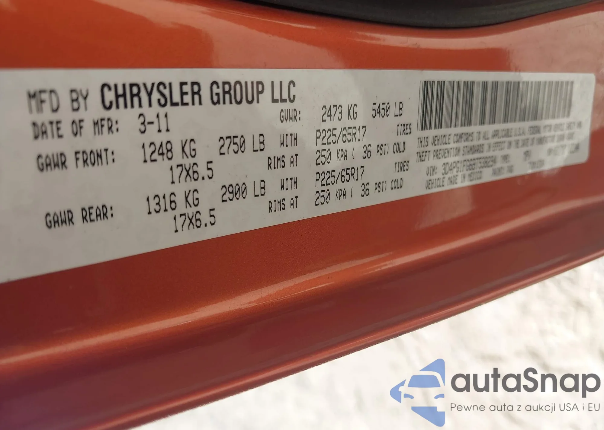 • VIN 3D4PG1FG6BT538294