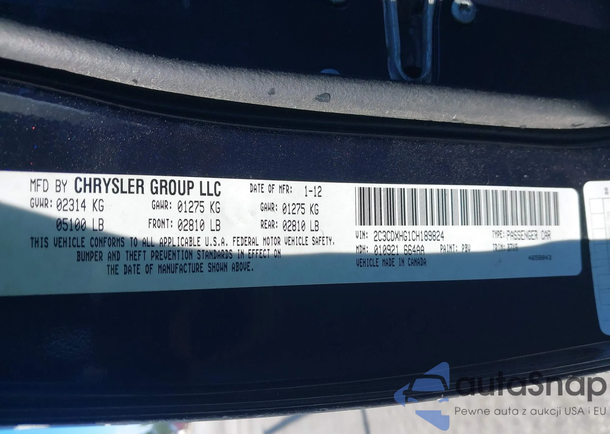 • VIN 2C3CDXHG1CH189824