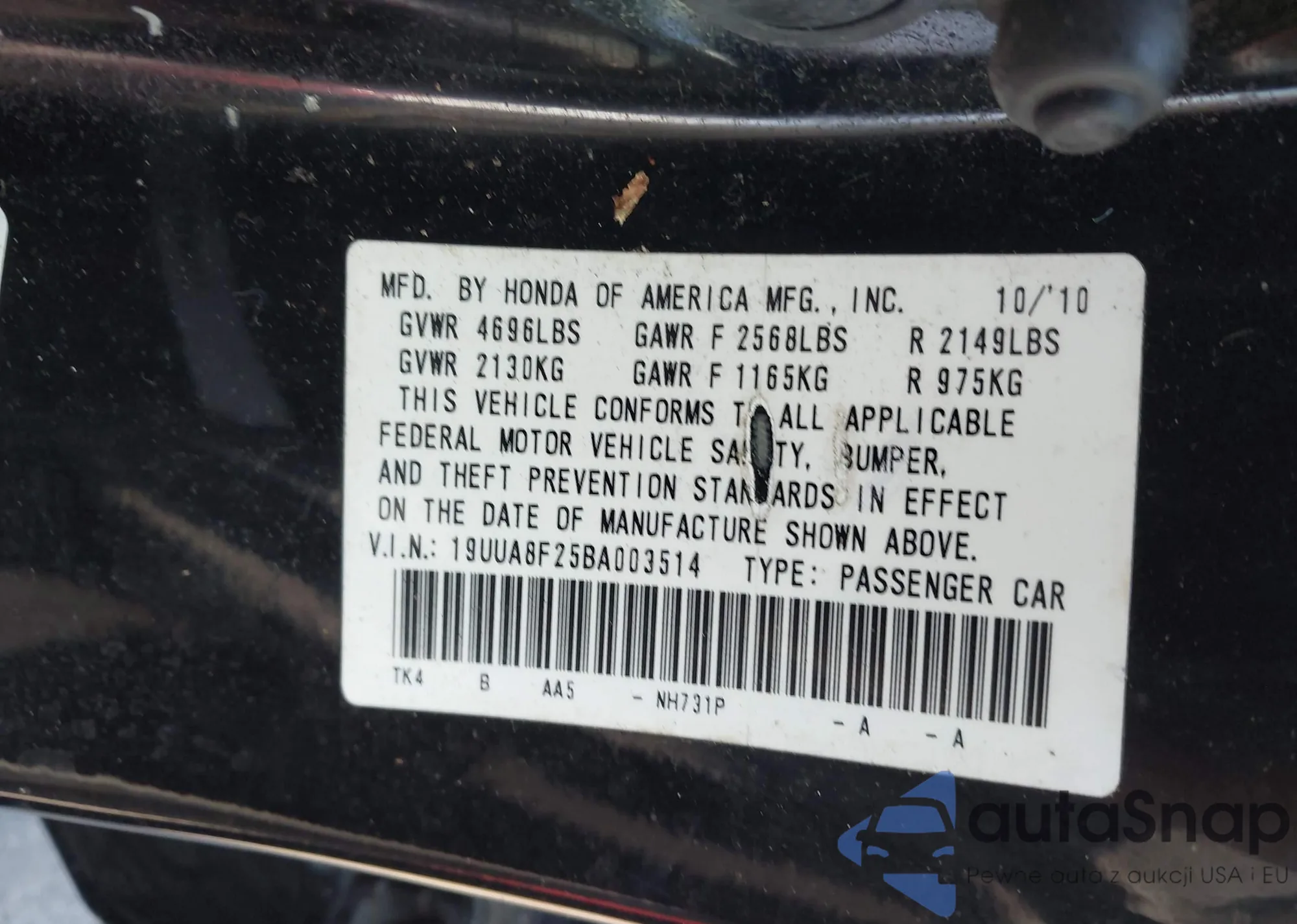 • VIN 5FNYF6H91MB003469