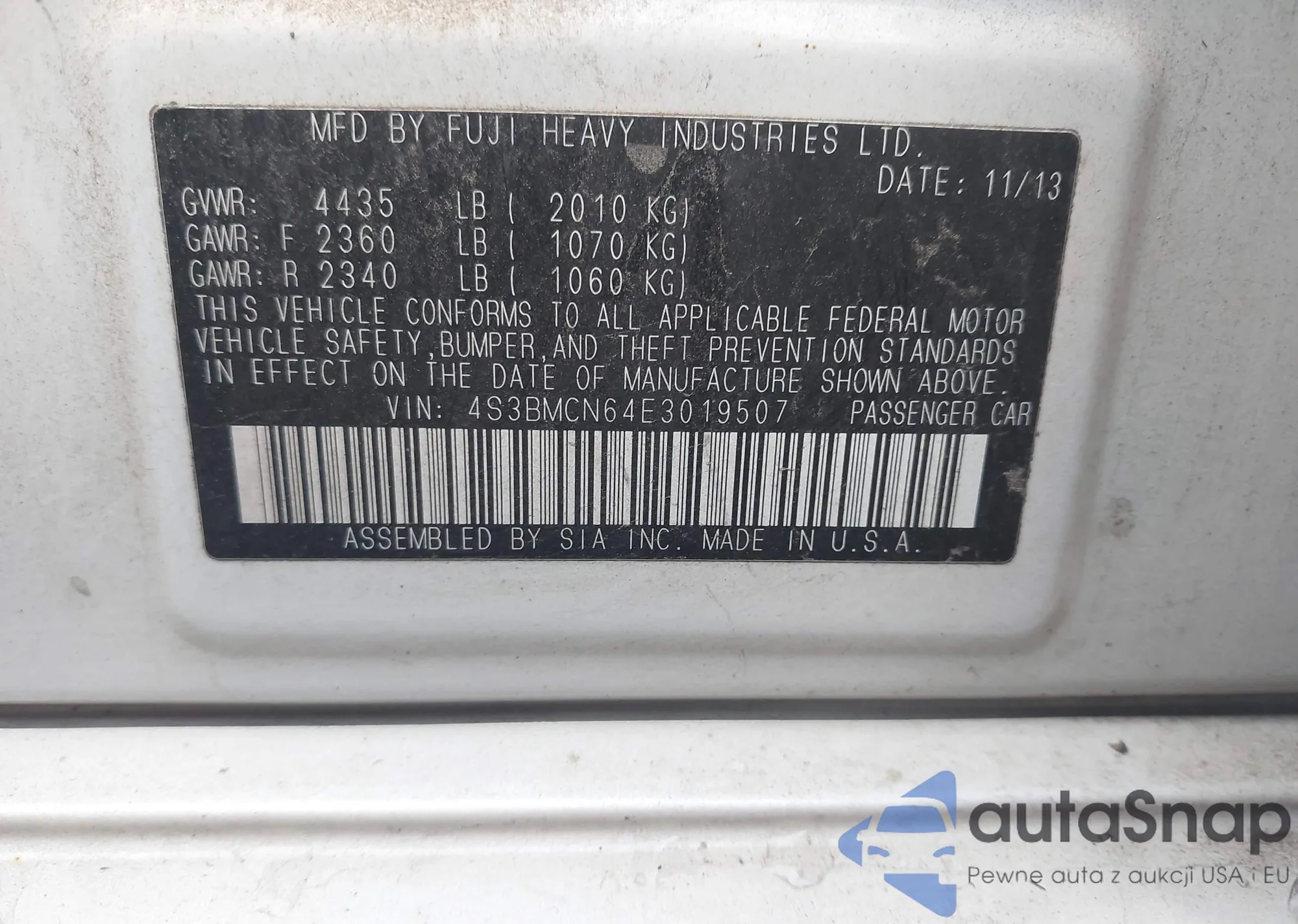 • VIN 1N4BL4BVXMN391169