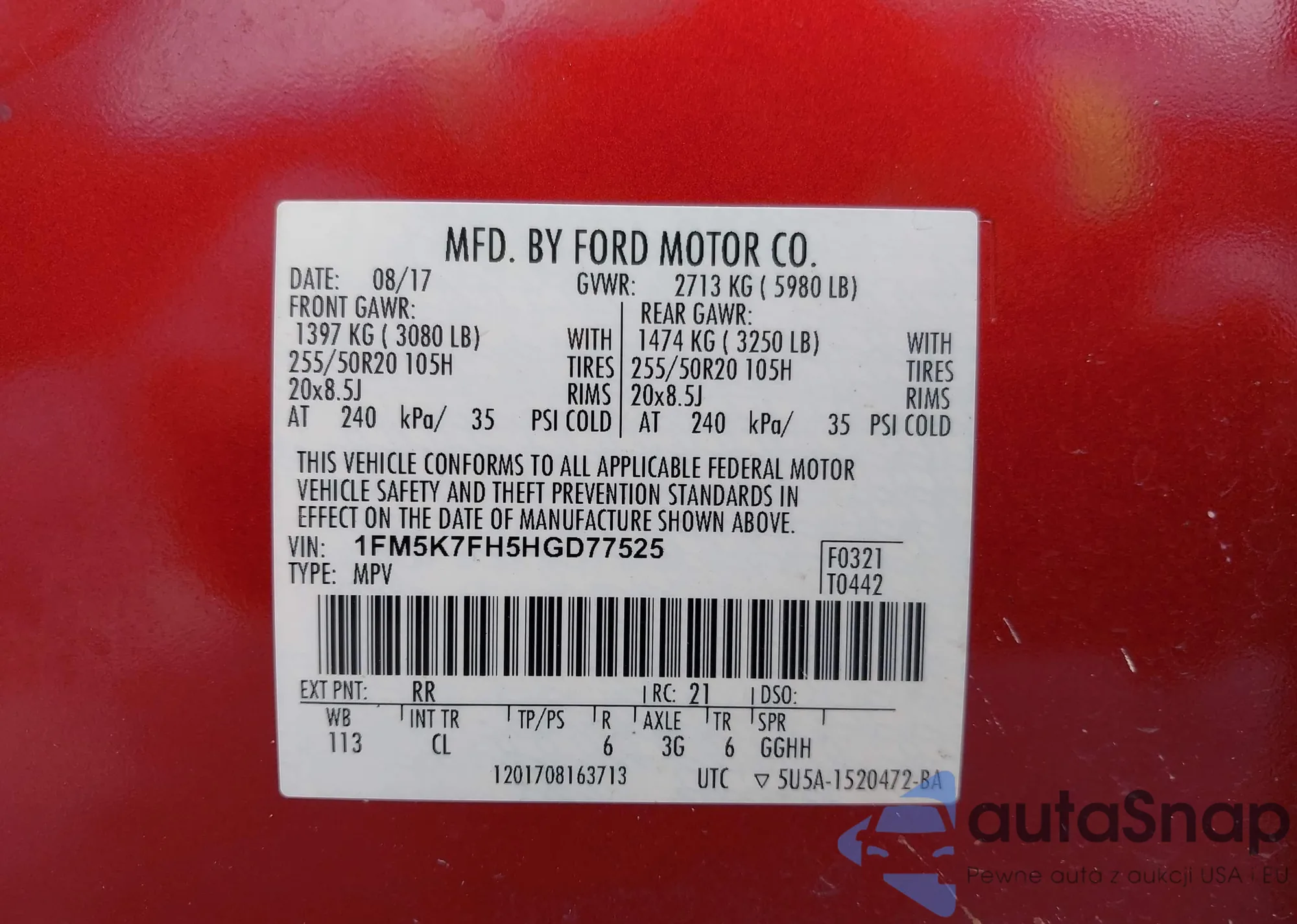 • VIN 1FM5K7FH5HGD77525