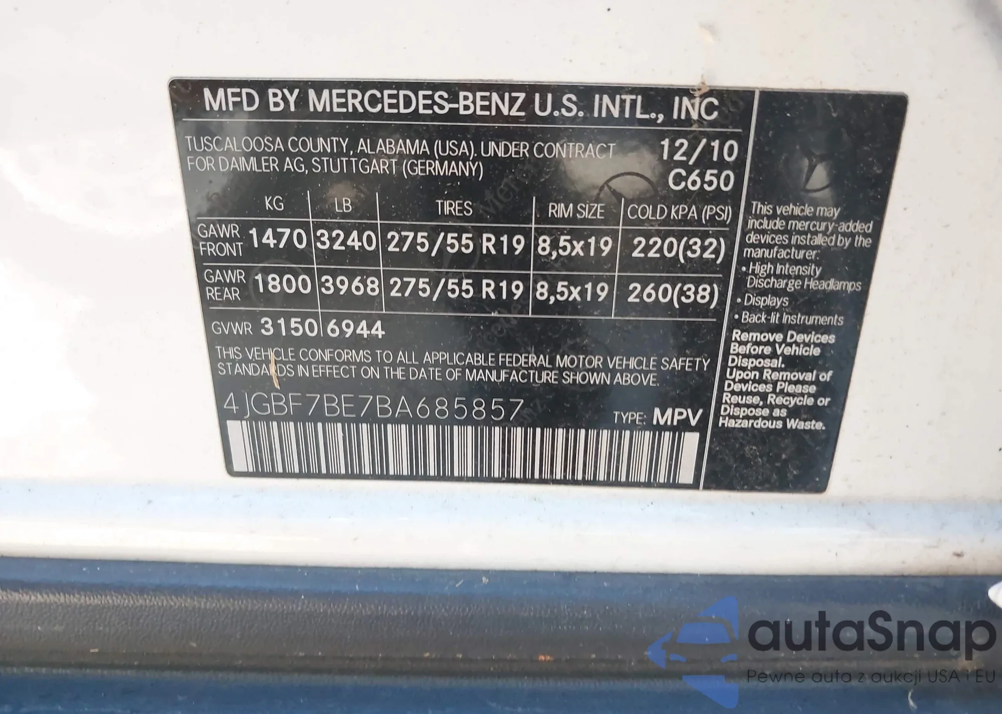 • VIN 4JGBF7BE7BA685857