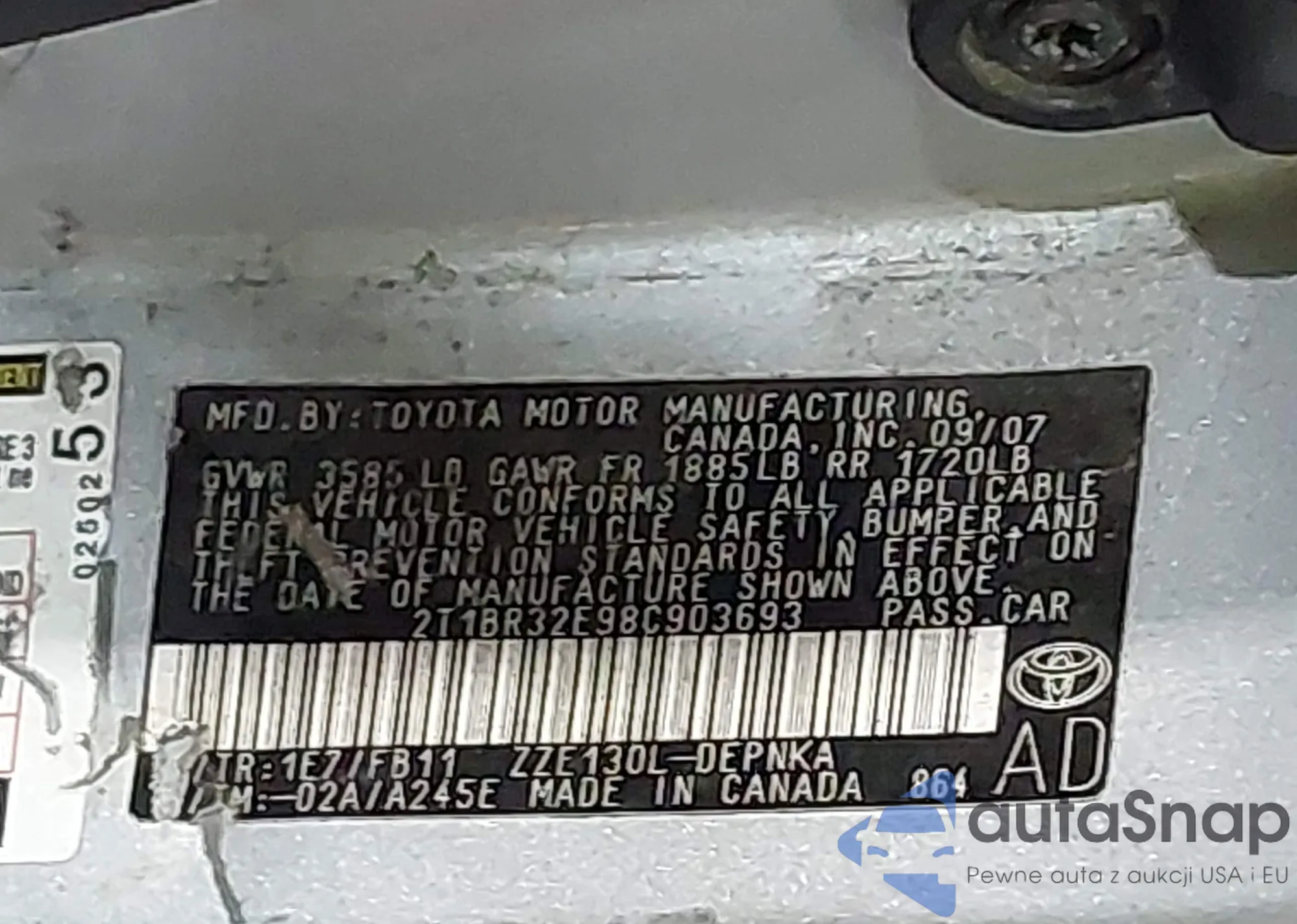 • VIN 4T1DAACK7SU561613