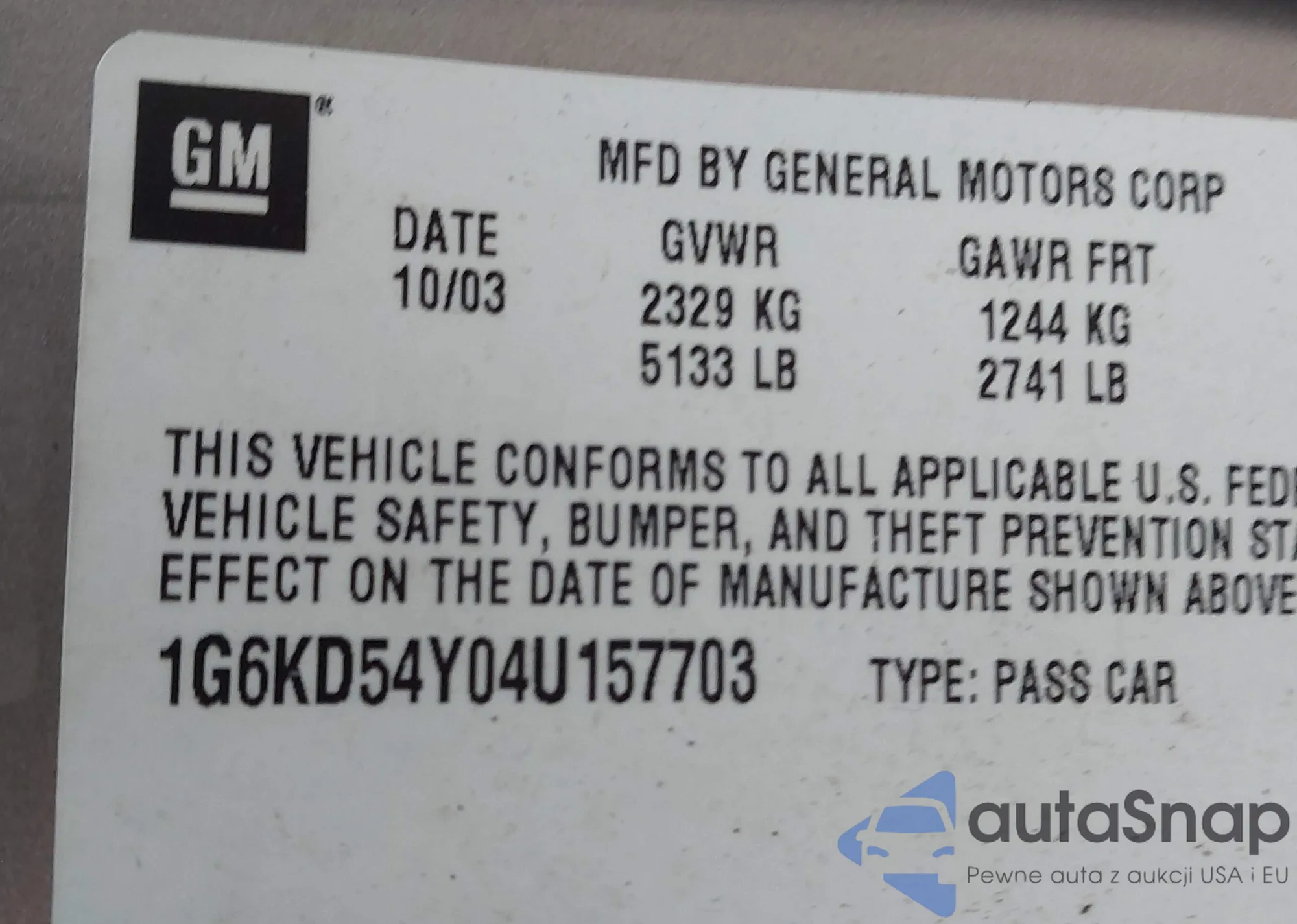 • VIN 1G6KD54Y04U157703