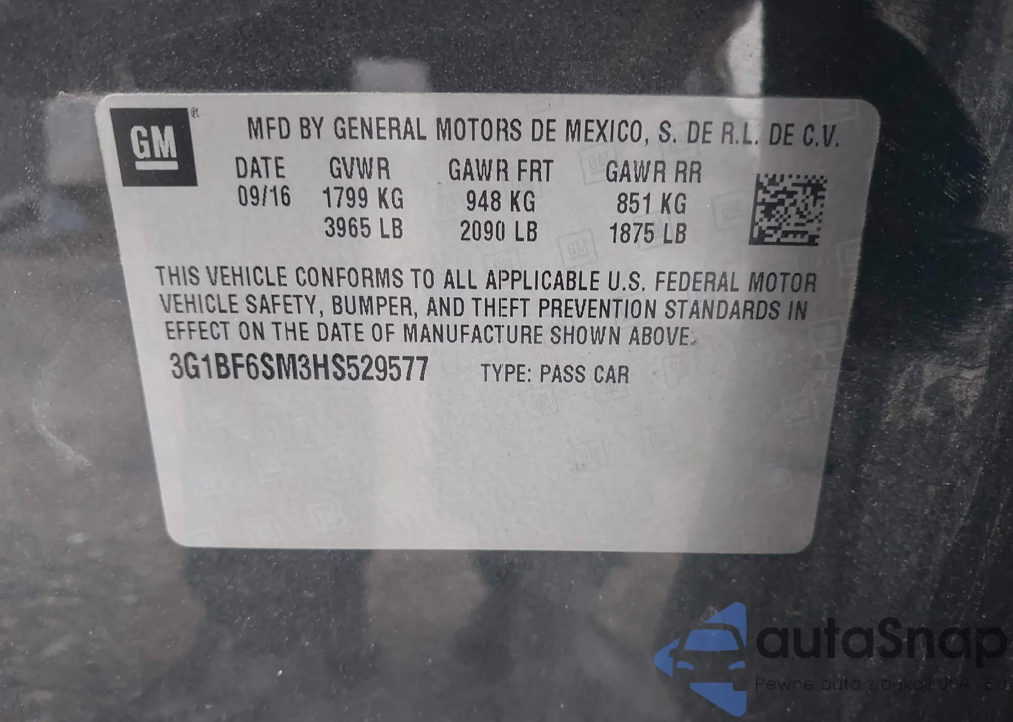 • VIN 3G1BF6SM3HS529577
