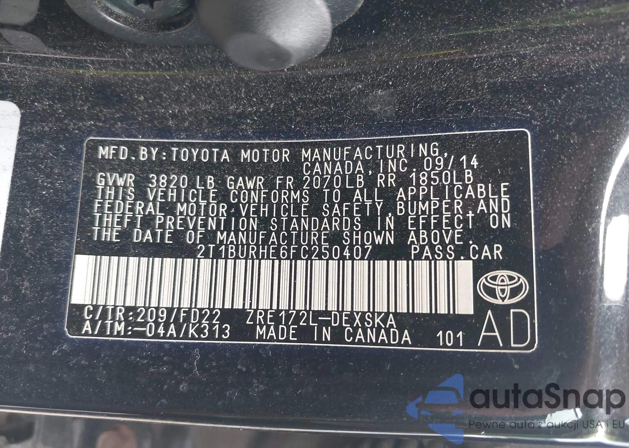 LOT: 42884151 VIN: 2T1BURHE6FC250407