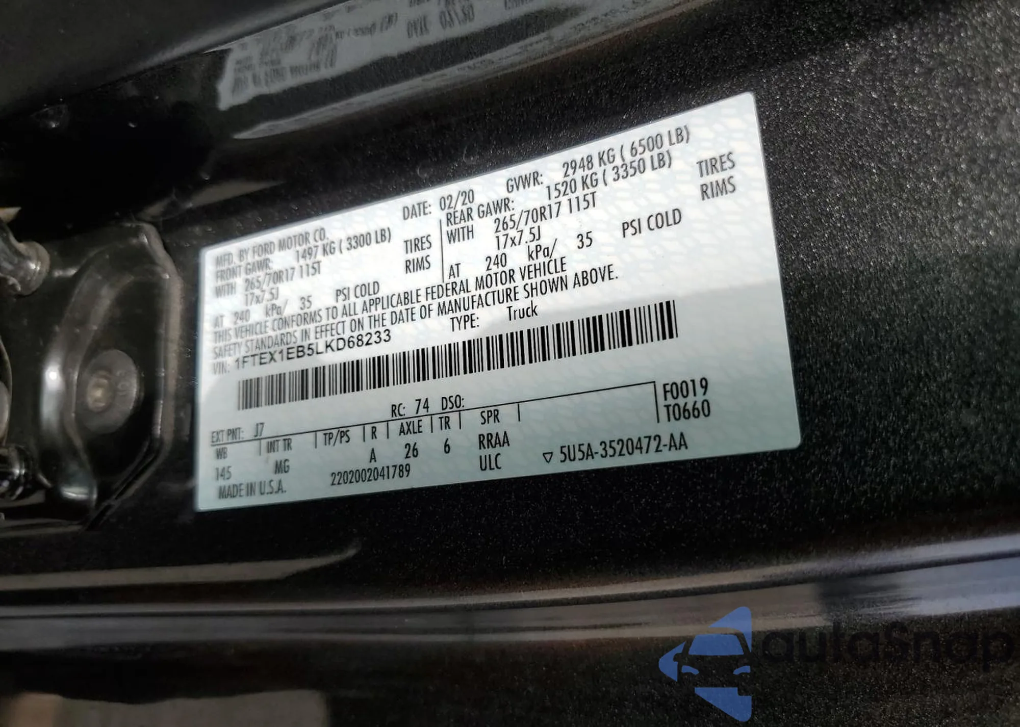 • VIN 1FTEX1EB5LKD68233