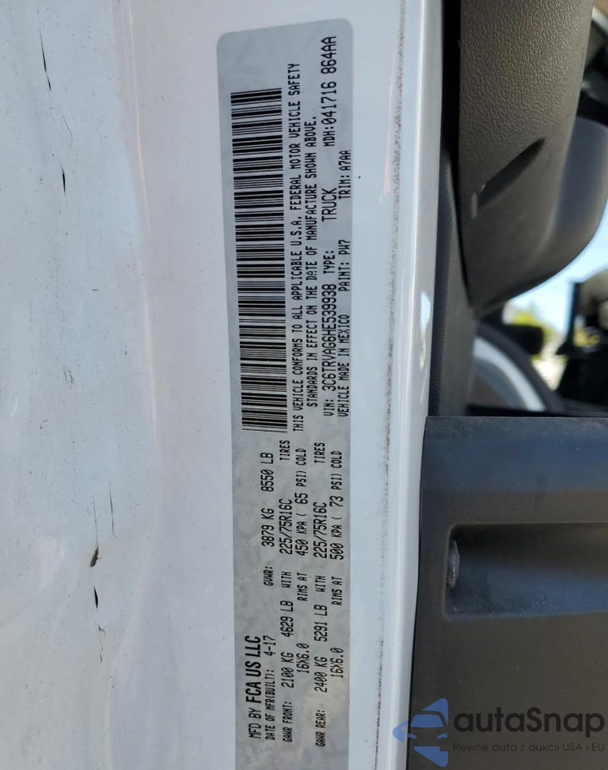 • VIN 3C6TRVAG6HE539938