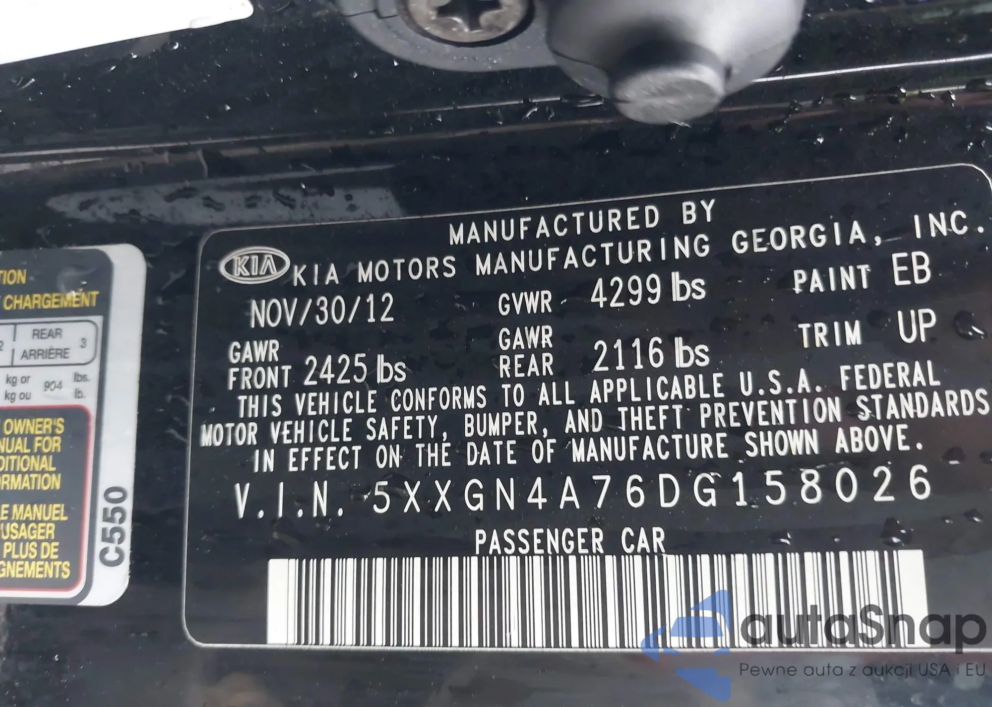 LOT: 43307877 VIN: 5XXGN4A76DG158026