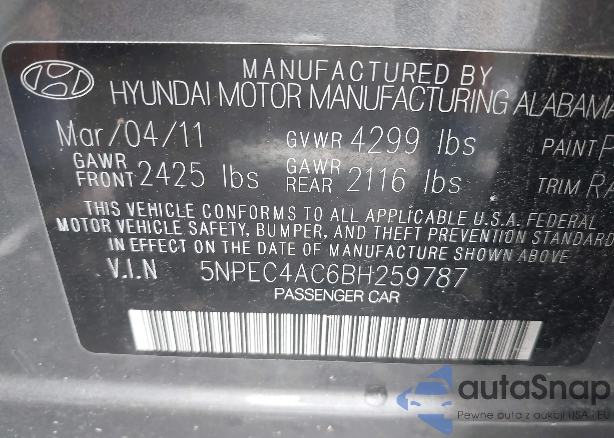 • VIN WAUEAAF40PN015109