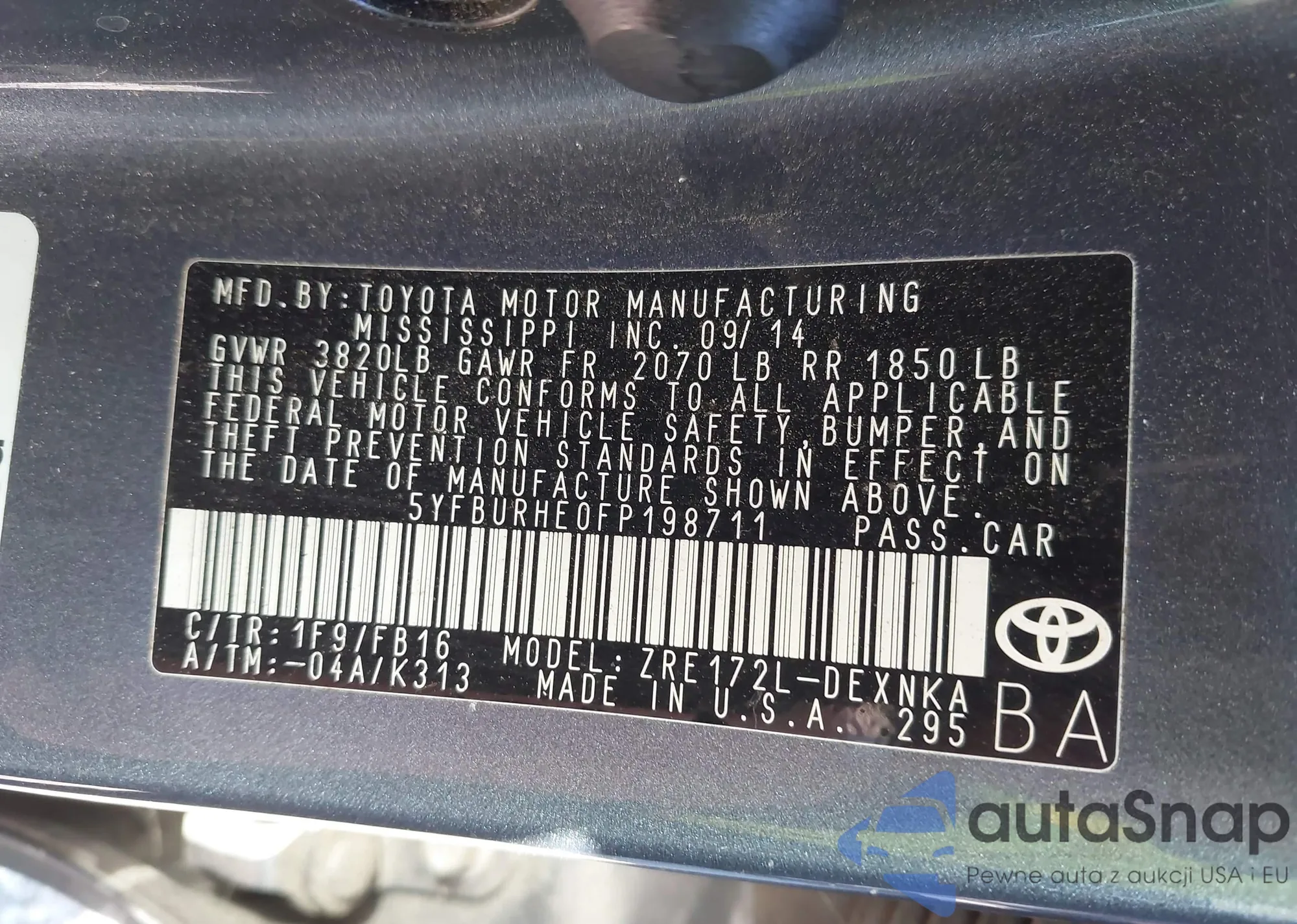 LOT: 43296487 VIN: 1N4AL3AP2FC281482
