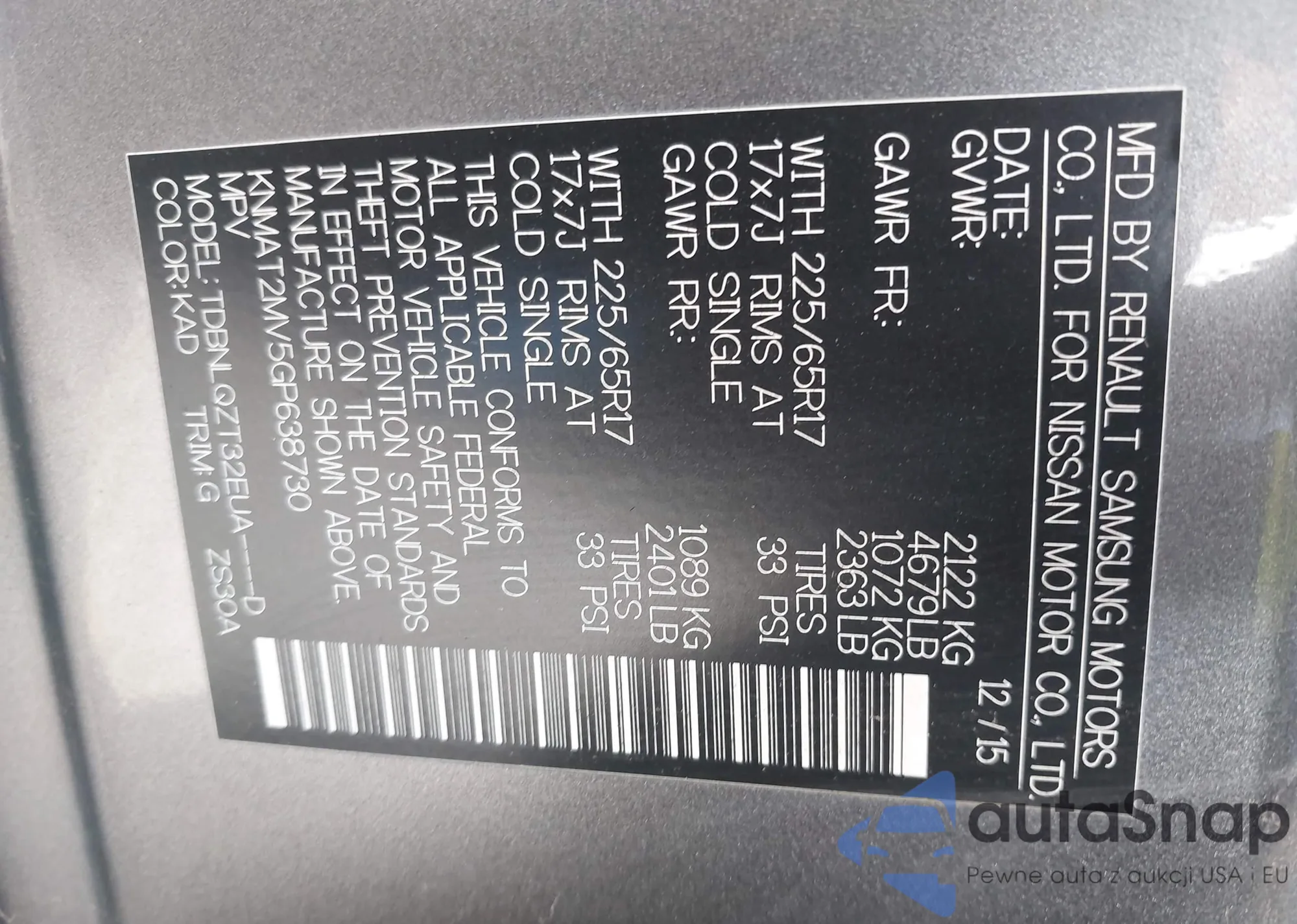 • VIN KNMAT2MV5GP638730