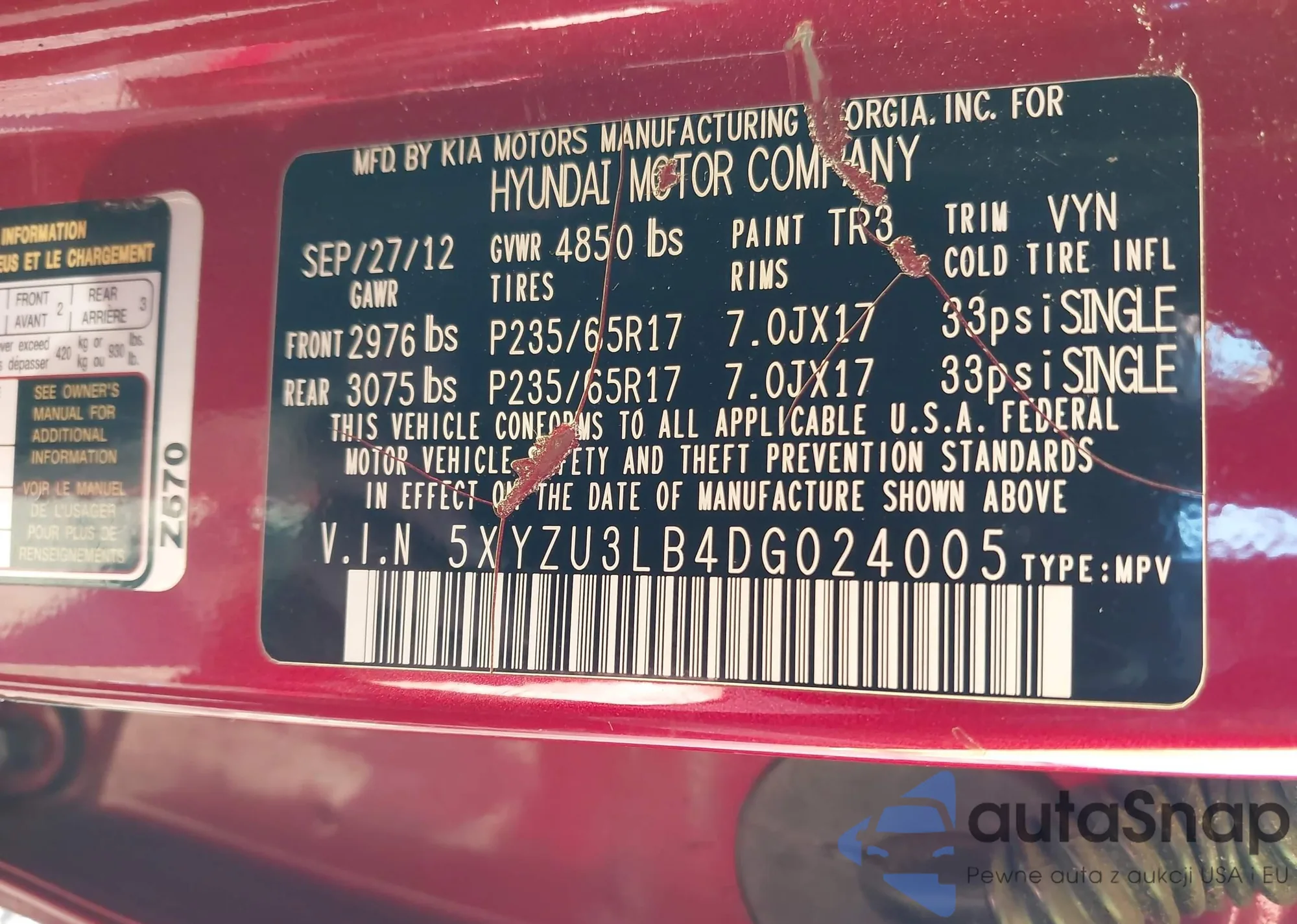 • VIN 5XYZU3LB4DG024005