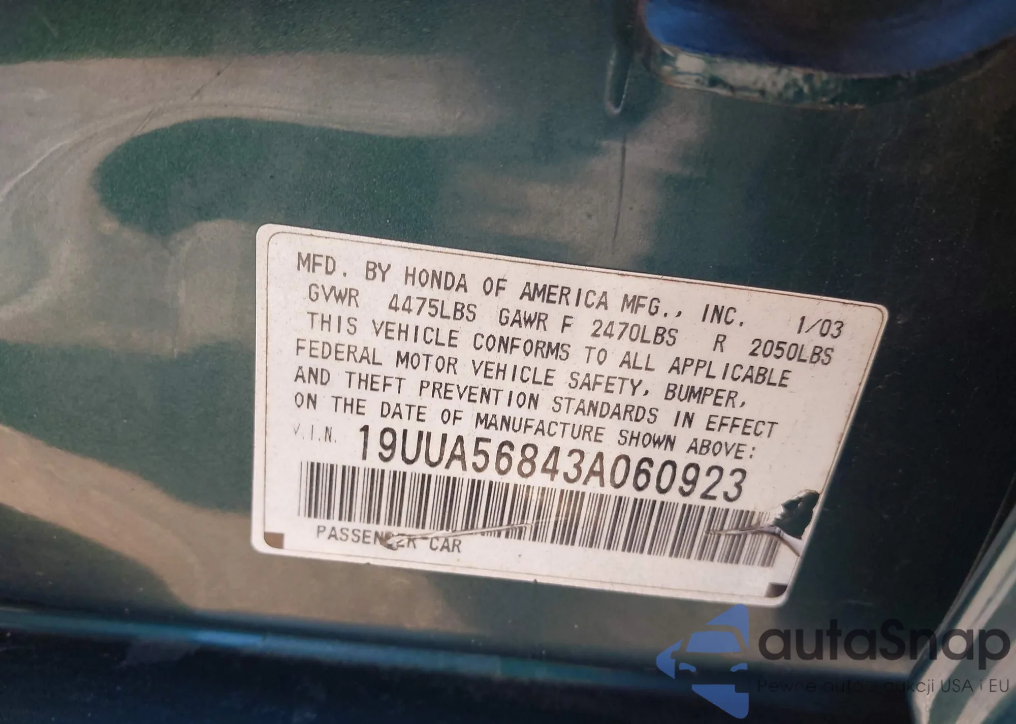 • VIN 19UUA56843A060923