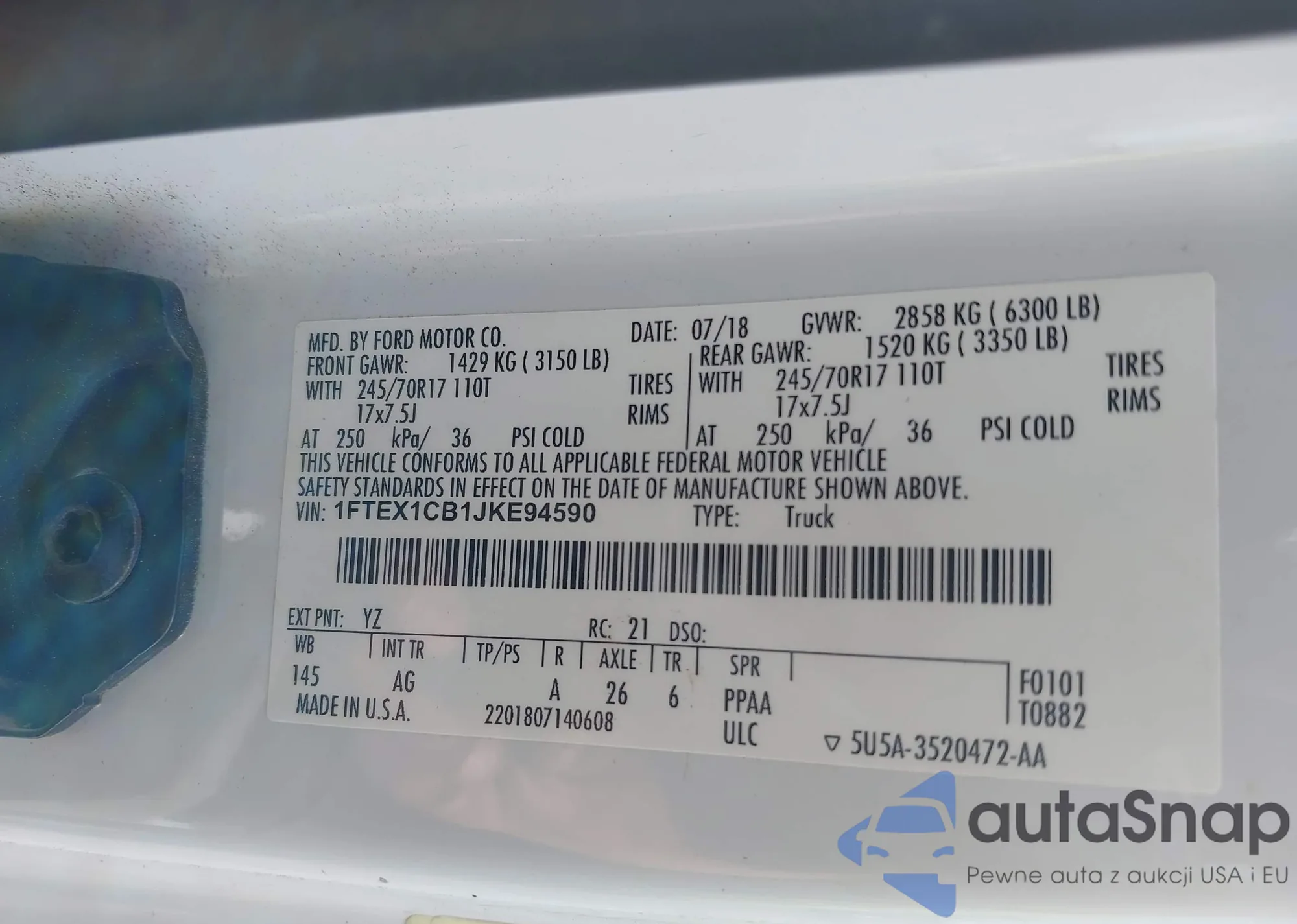 • VIN 1FTEX1CB1JKE94590