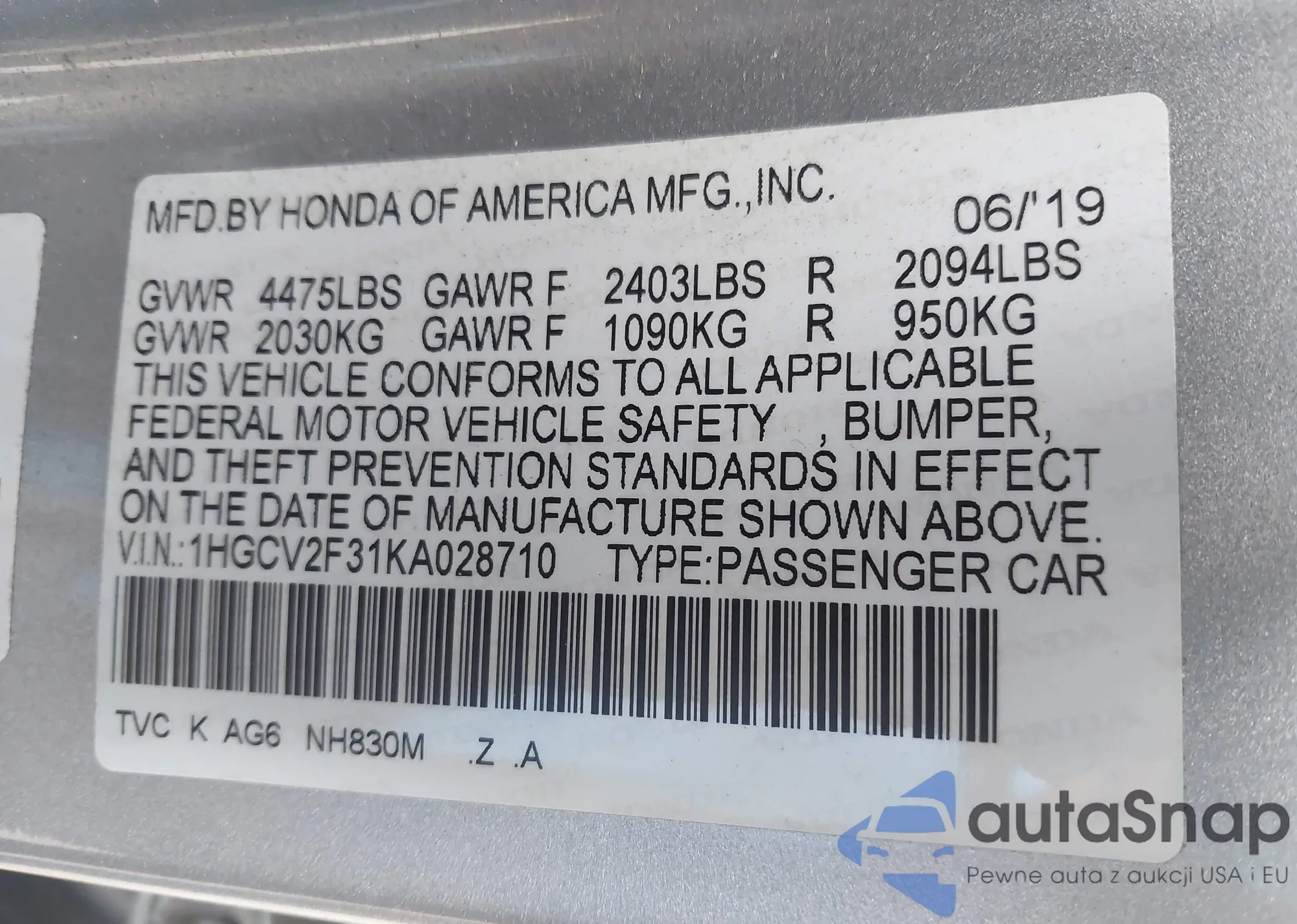 LOT: 43226087 VIN: 1HGCM726X4A003551