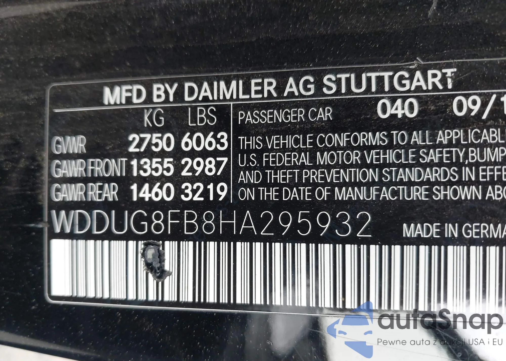 • VIN 1HGCP2F82AA149413