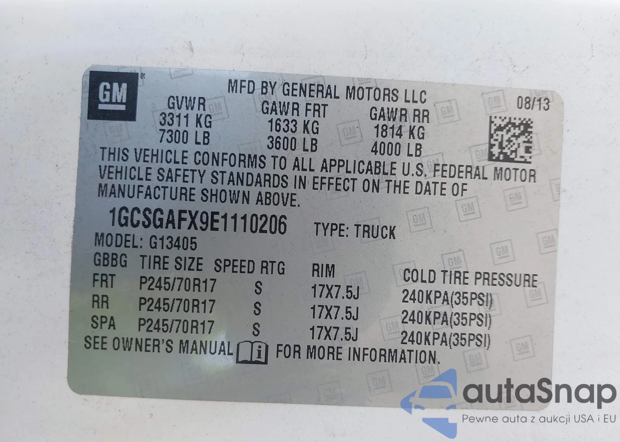 • VIN 1GCSGAFX9E1110206