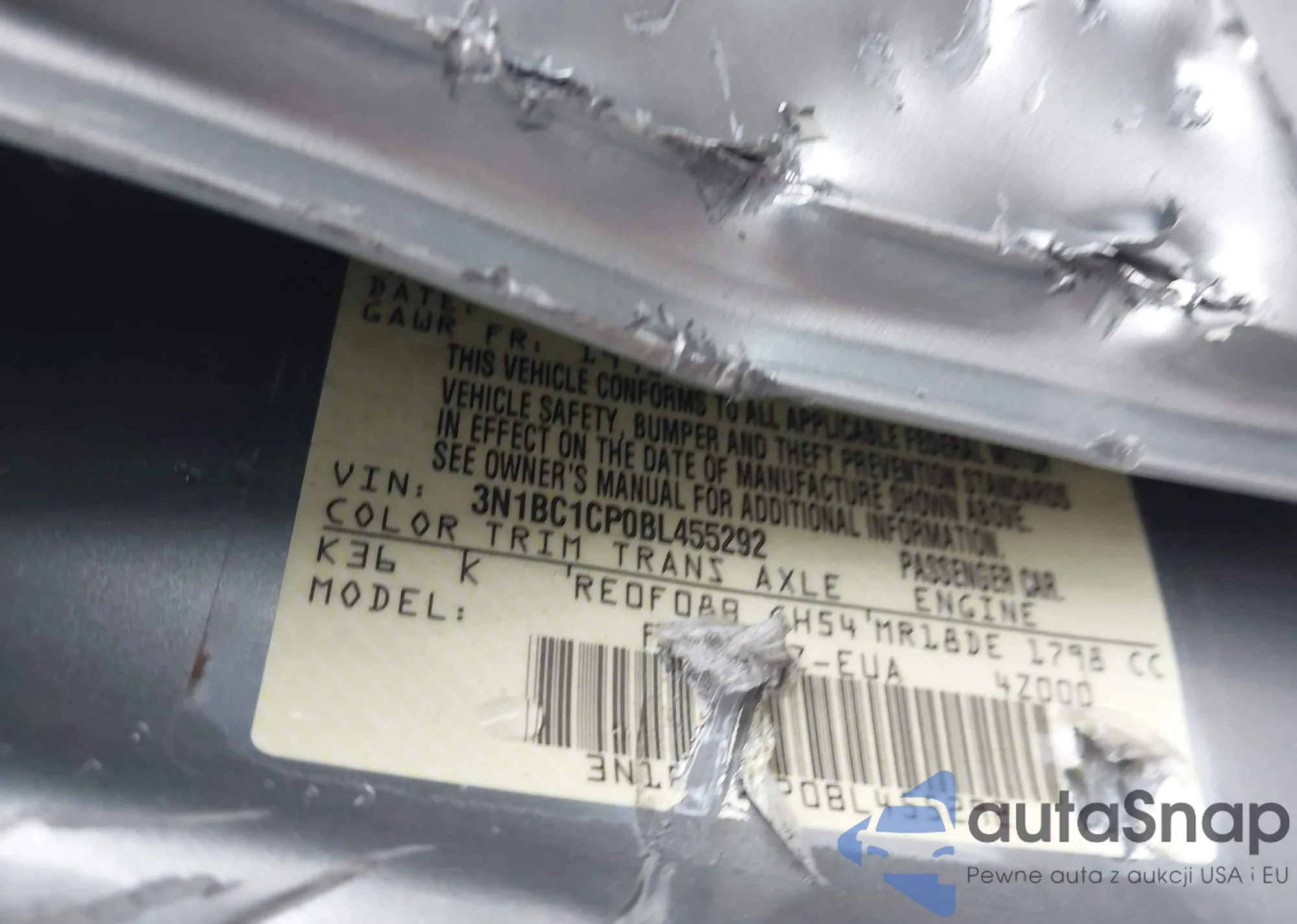 • VIN 3N1BC1CP0BL455292