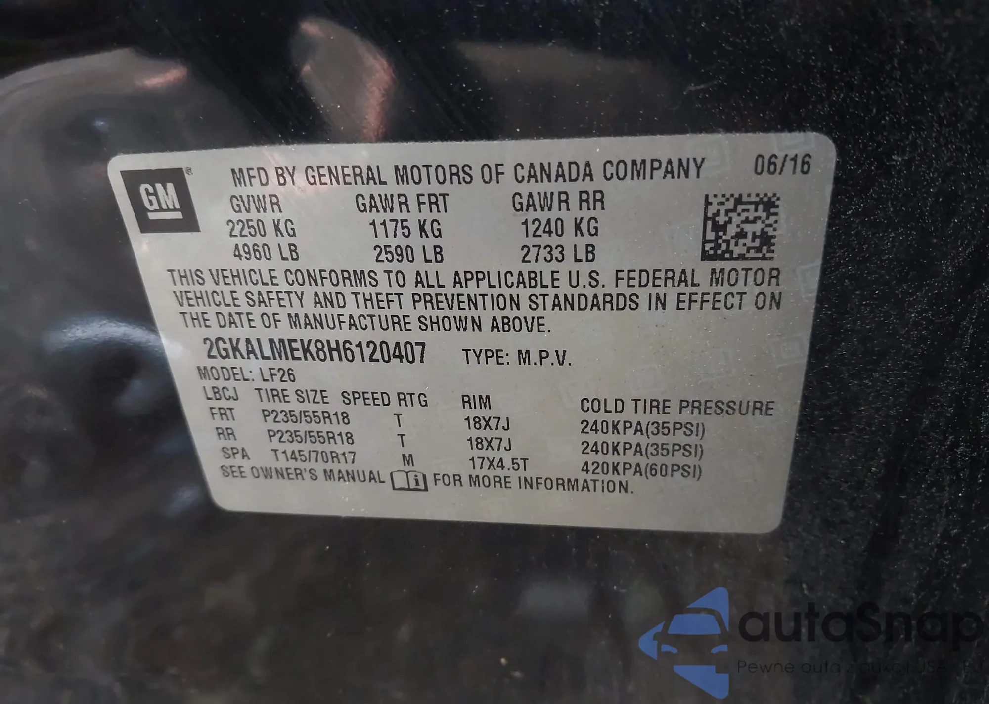 LOT: 42694991 VIN: 2GKALMEK8H6120407