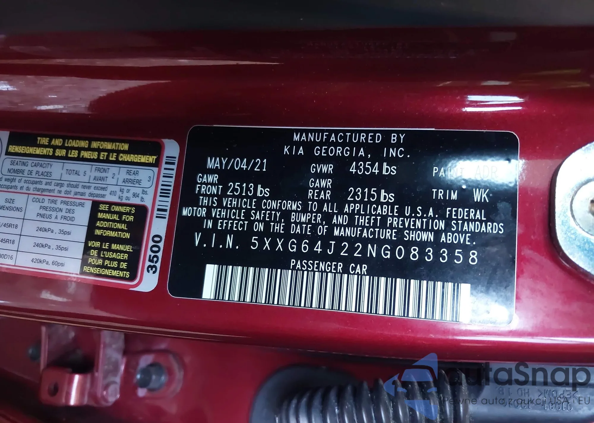 • VIN 5XXG64J22NG083358