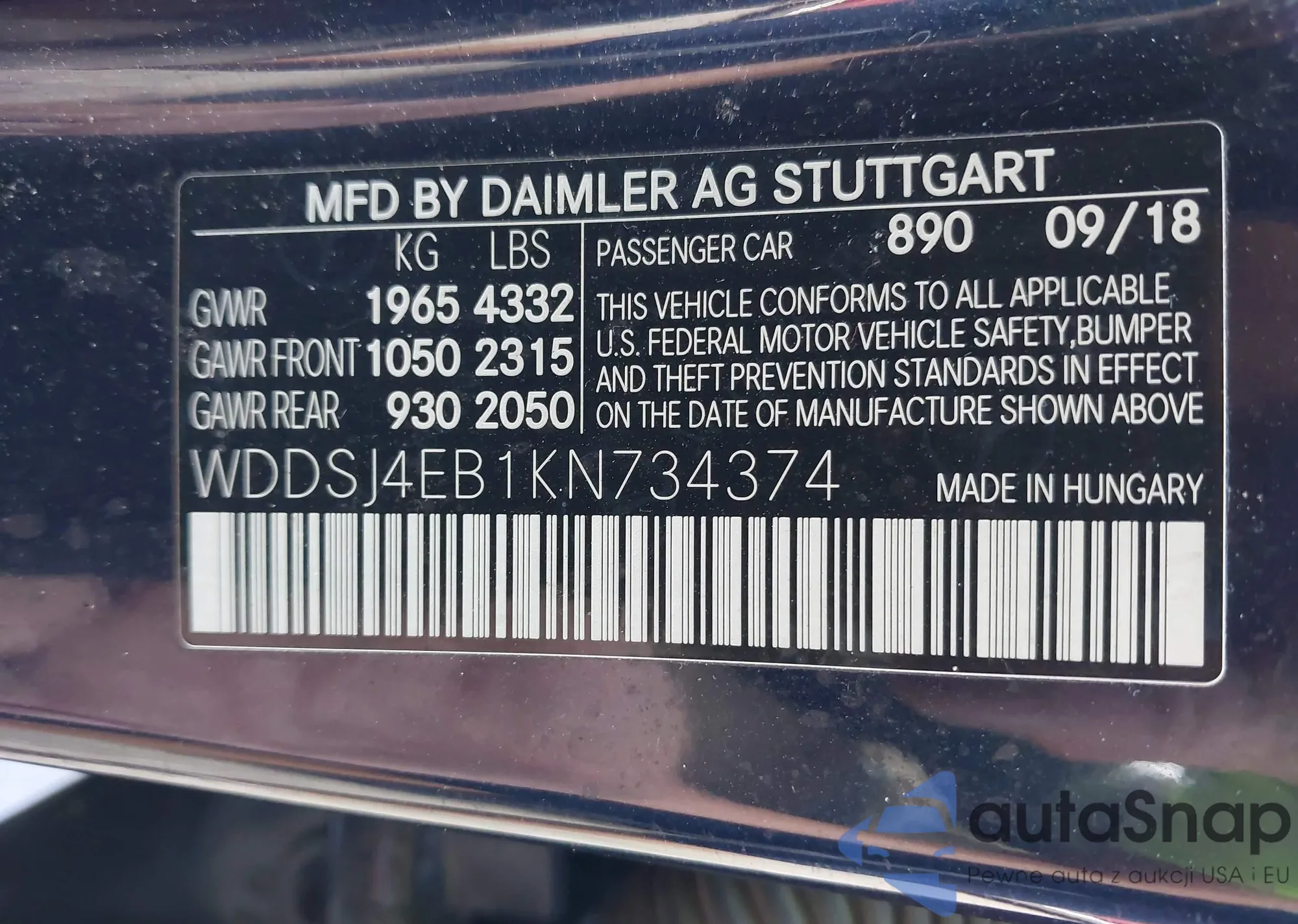 LOT: 43159280 VIN: SAJWJ0EF6E8U20442