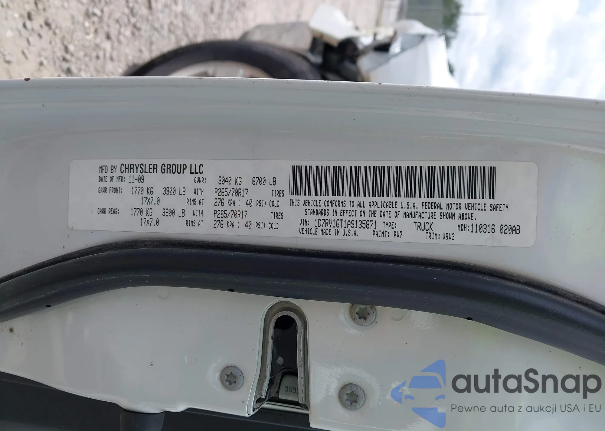 • VIN 1HGCP2F37AA179835