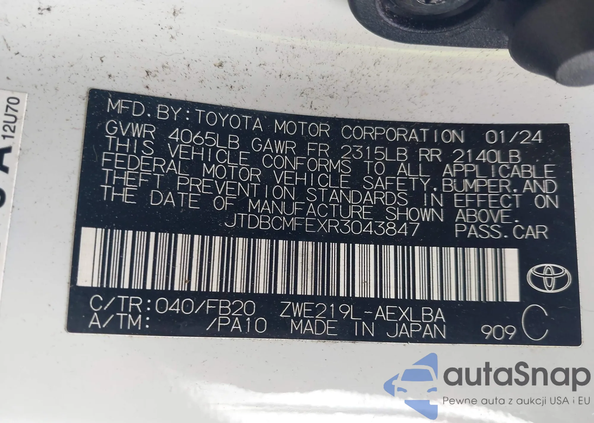 LOT: 43131571 VIN: 19XFB2F54CE032173