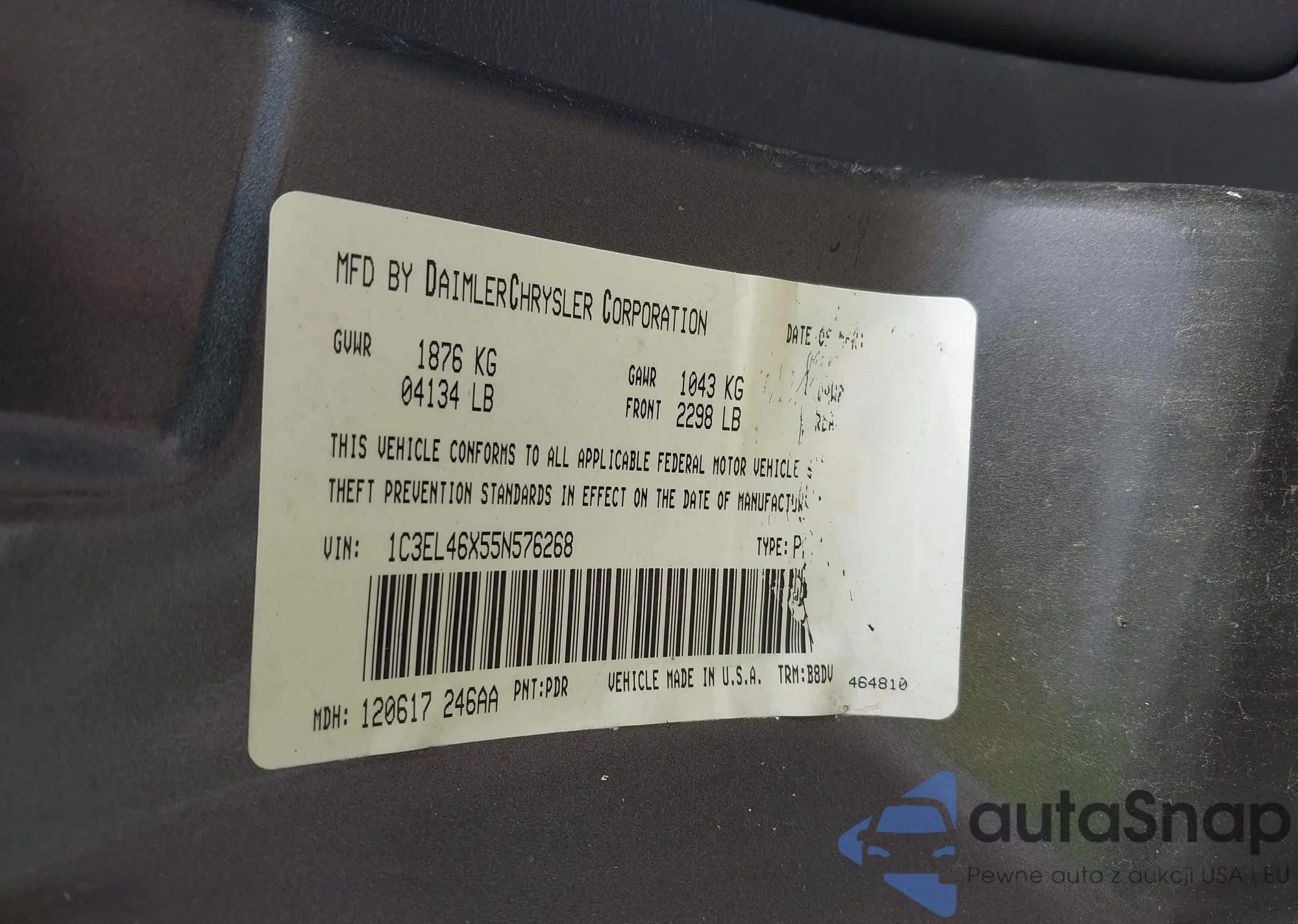 LOT: 43299255 VIN: 1C3EL46X55N576268