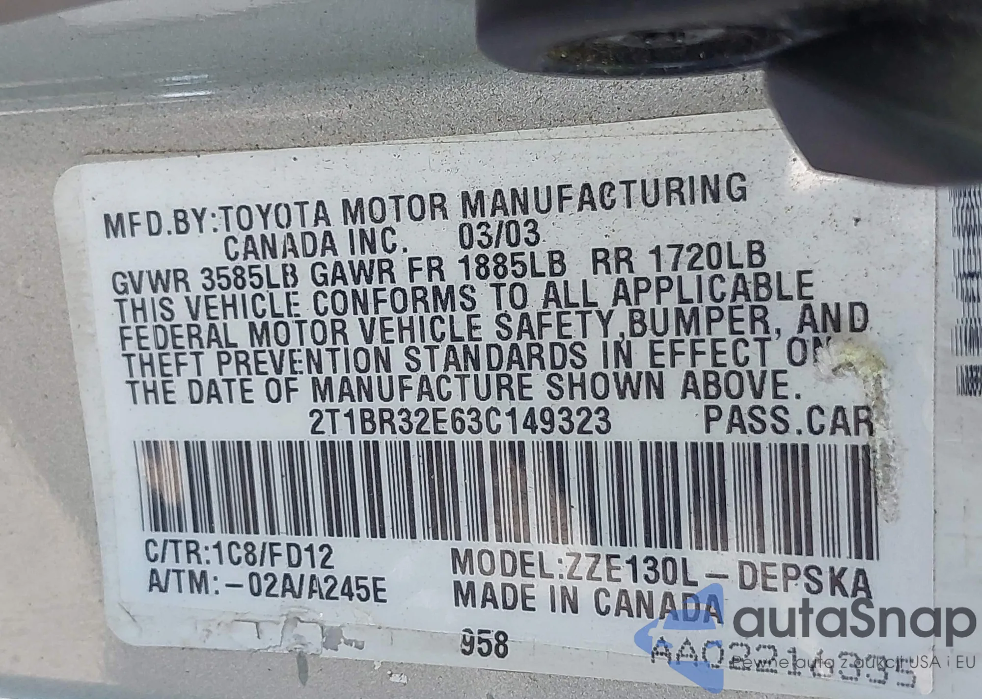 • VIN 2T1BR32E63C149323