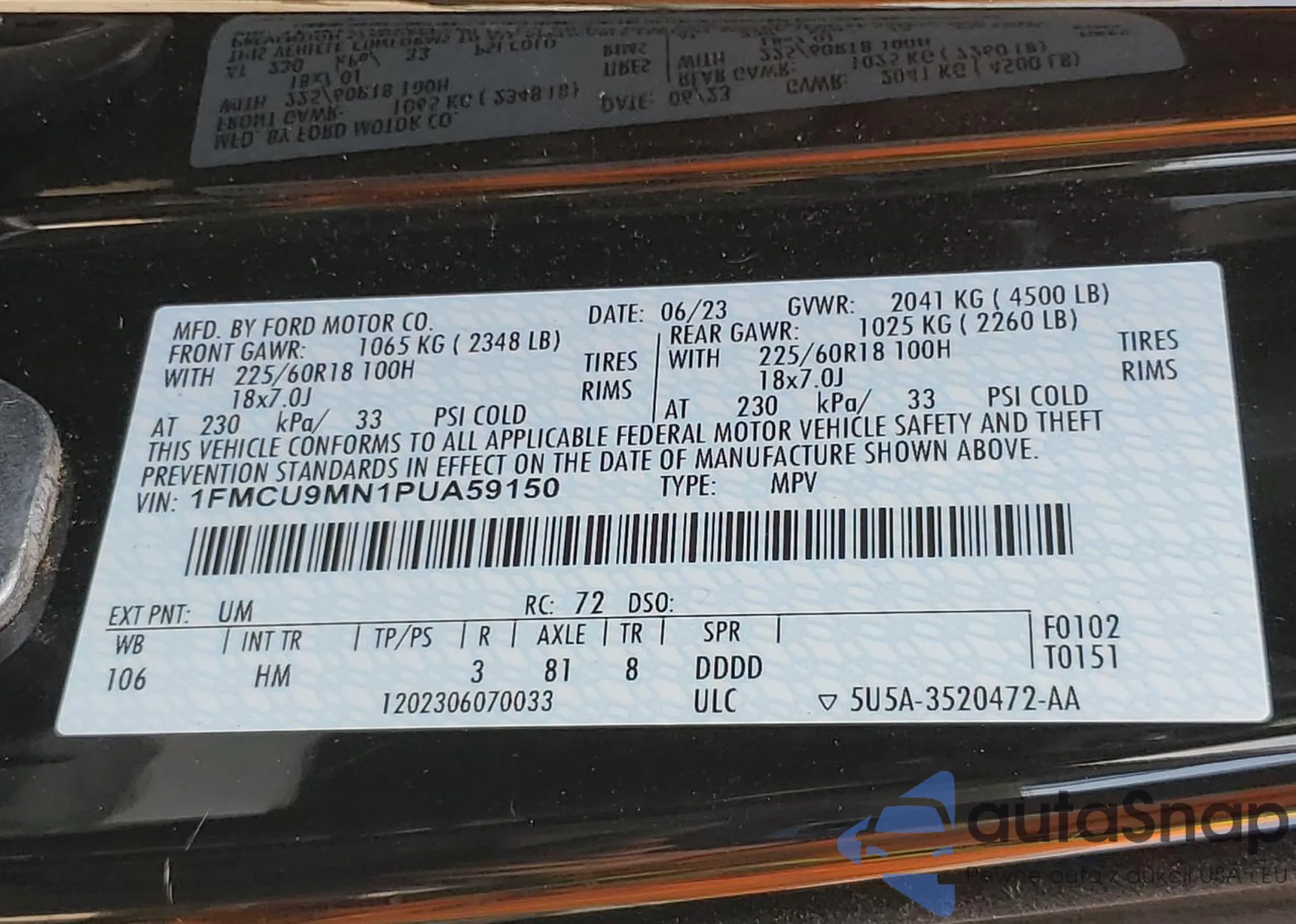 • VIN 5N1AZ2MG6FN241761